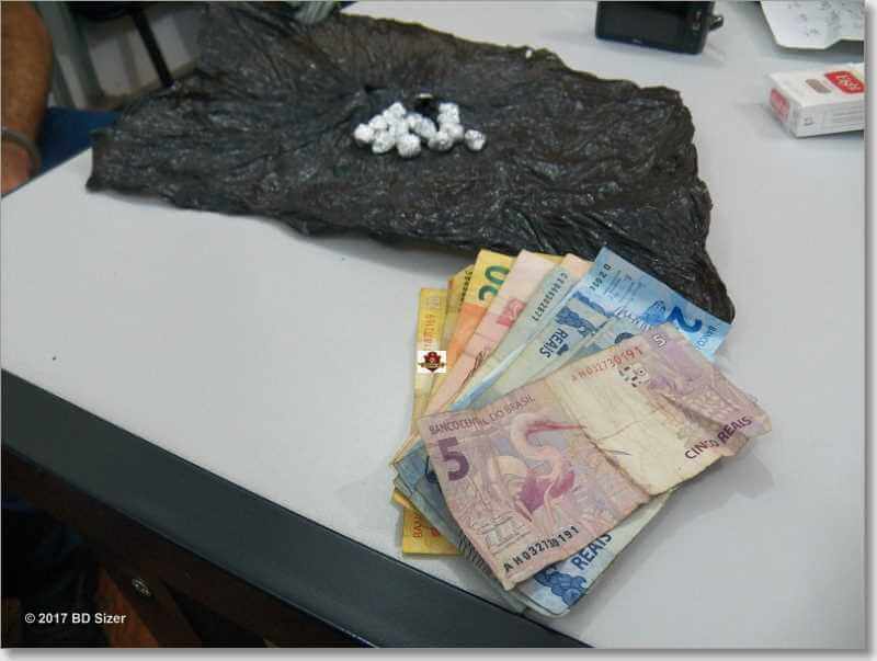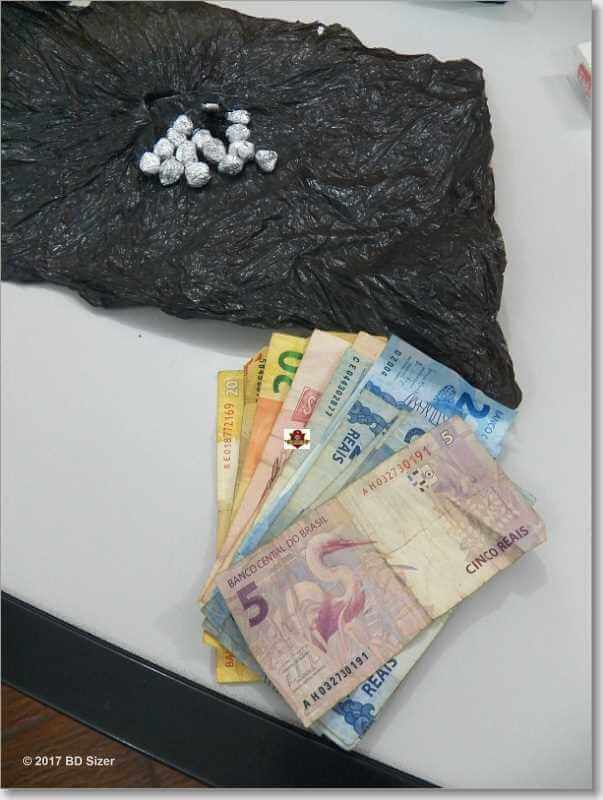 Segundo informações, os policiais estavam investigando um jovem que estava vendendo droga defronte a um bar. Ainda de acordo com a Polícia Civil, o traficante pegava uma cadeira do bar, colocava do outro lado da rua, sentava e fica aguardando a clientela. A droga ele escondia em uma árvore. Quando o usuário chegava ele pegava a encomenda e entrega. Hoje os policiais montaram uma campana e após o mesmo vender o entorpecente para um usuário maior de idade, ele foi detido. O Canil da GM foi acionado, mas não foi localizado mais droga.