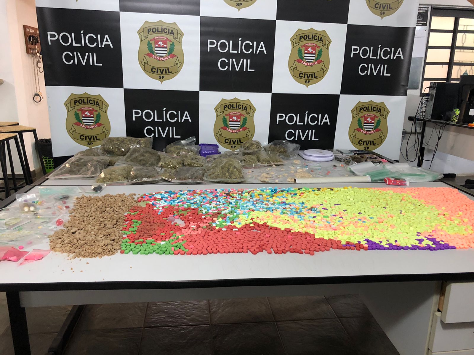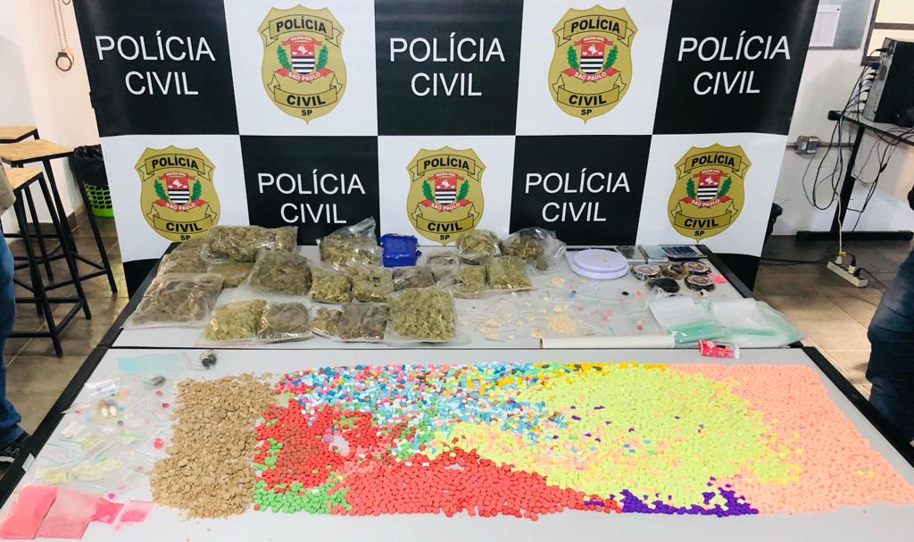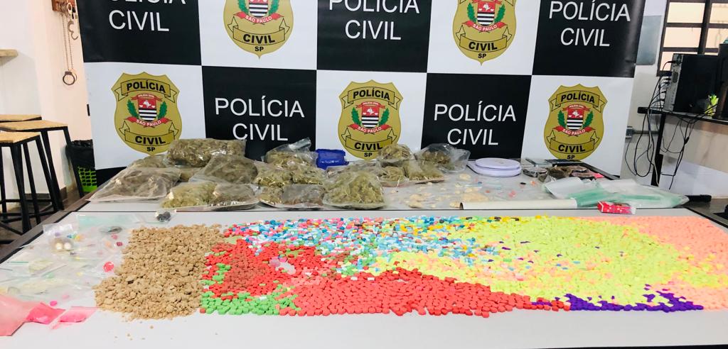Foram apreendidos 4.400 comprimidos de ecstasy; 1,923kg de maconha; 521gramas de haxixe; 490g. de MD; 18g. de LSD; 6g. de cogumelo e 49g. de “gota”.