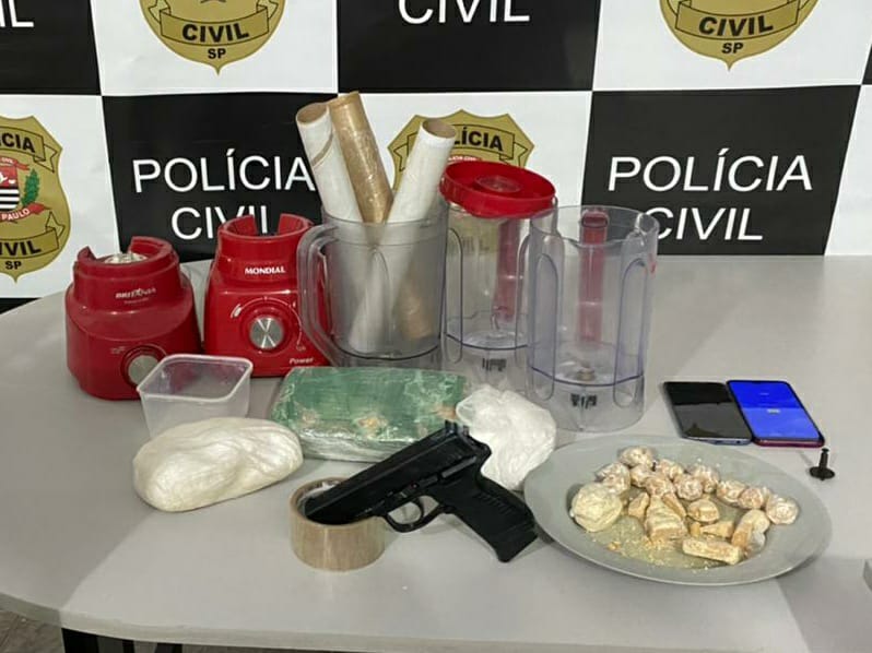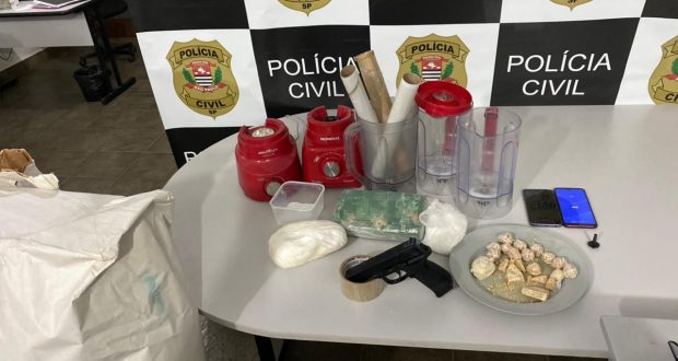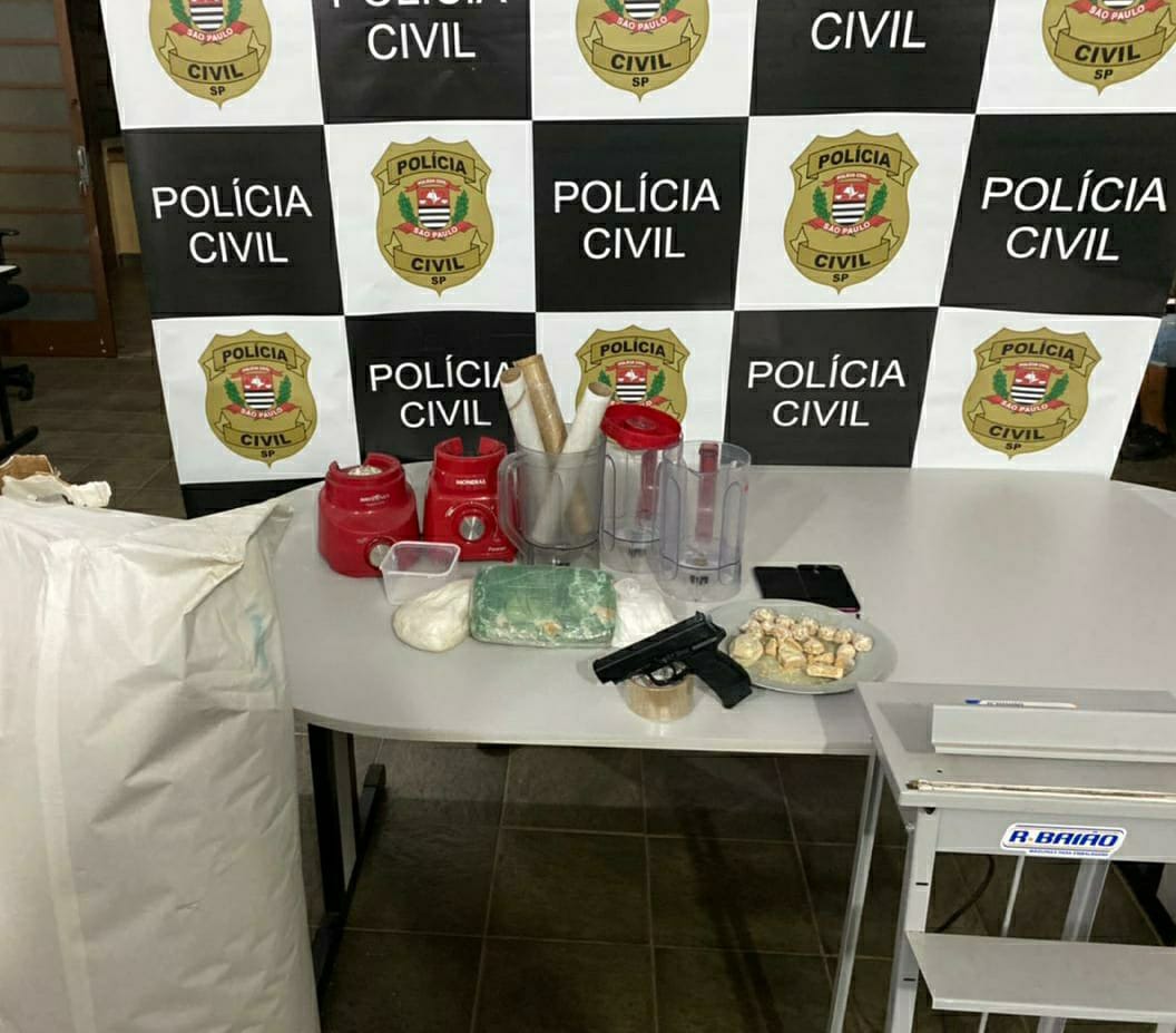 Na data de 10/02/2021, no período da tarde, em mais ação contra o tráfico de drogas na região de São Carlos-SP , a  POLICIA CIVIL através de equipe da DISE,  com apoio de Policiais Civis do *CIP* de São Carlos, sob o comando do delegado de Polícia dr. Miguel Carlos Capobianco Jr, prenderam em flagrante dois indivíduos pela prática do crime de tráfico de drogas (artigo 33, caput, da Lei Federal 11.343/06). Em cumprimento a mandado de busca e apreensão domiciliar, as equipes localizaram e apreenderam no imóvel alvo um tijolo de “crack”, pesando 1,403kg, 296 porções de tamanhos variados de “crack”, máquina seladora, um simulacro de arma de fogo do tipo pistola, aparelhos celulares, farto material de “mistura”, totalizando 10,5kg, além de eletrodomésticos utilizados para a transformação de drogas. Diante dos fatos os indiciados foram autuados em flagrante delito e recolhidos ao Centro de Triagem de São Carlos/SP à disposição da Justiça Pública. *As investigações prosseguem*.