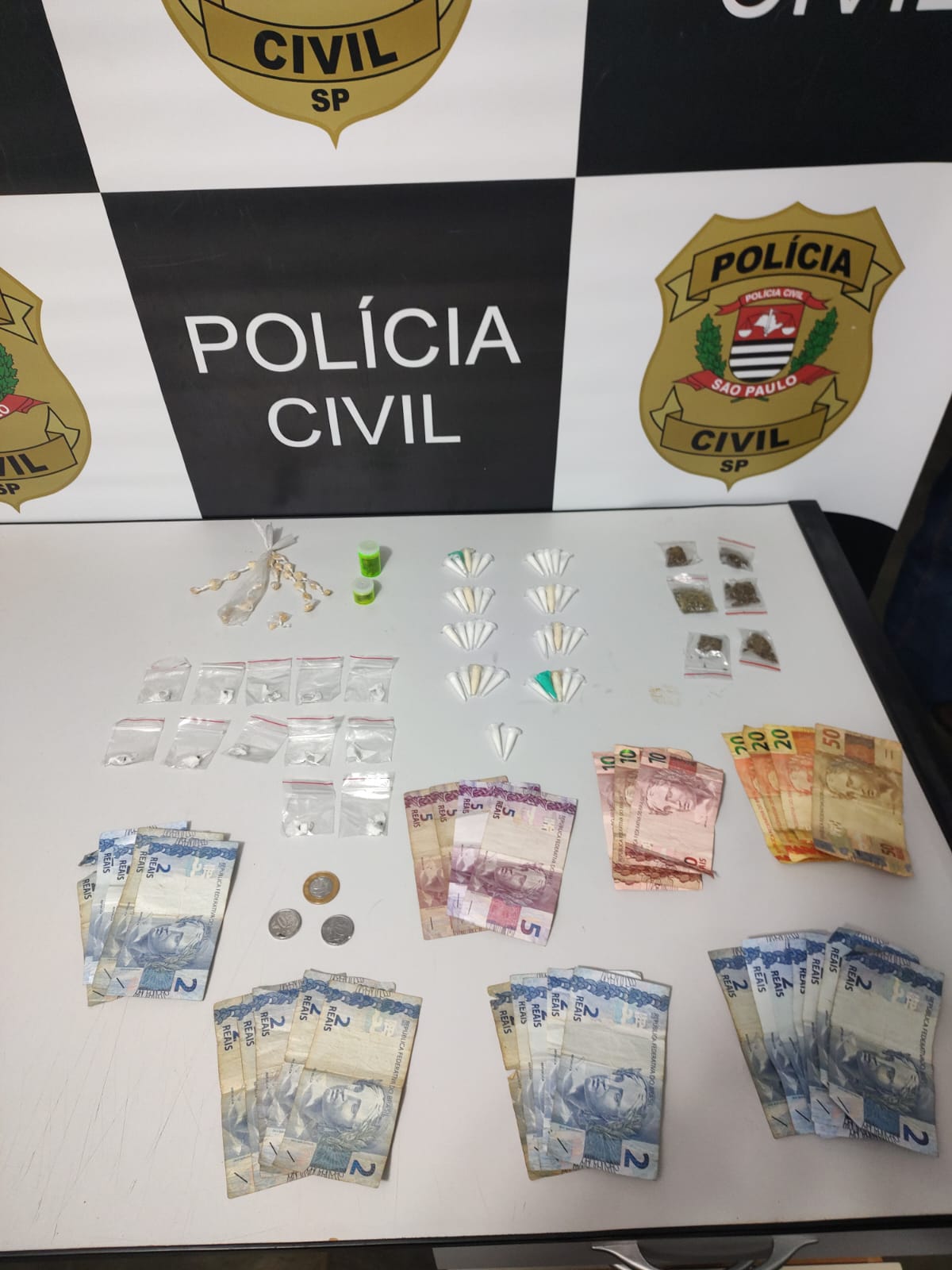 *A Polícia Civil do Estado de São Paulo*, por meio da *D.I.S.E.* de São Carlos, durante atuação de campo de Polícia Judiciária deflagrada no bairro Jd. Hikare, efetuou a *prisão em flagrante* de três indivíduos (M. G. B – 27 anos, M. C. O – 26 anos e K. O. S – 20 anos) pela prática dos crimes de *tráfico de drogas e associação para o tráfico de drogas*. Na ocasião da atuação policial, foram localizadas drogas do tipo cocaína, maconha, “ice”, “crack” e “haxixe”, todas prontas e embaladas para comercialização, além de R$204,00 e dois aparelhos celulares. Após terem sido autuados em flagrante, todos os indiciados foram recolhidos ao Centro de Triagem de São Carlos/SP. *As investigações prosseguem.*