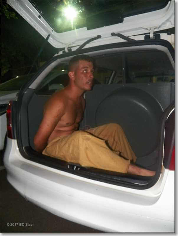 Segundo informações, os presidiários estavam nas ruas e na hora de voltar para Itirapina, dois haviam fugido. A PM foi comunicada do fato e as guarnições passaram a patrulhar com vista aos fugitivos. Por volta das 20:00, uma equipe estava pela rodovia Washington Luís, no km 225, regiões dos motéis, foi avistado o indivíduo trajando a roupa do presídio. Os policiais cabo Fábio Marques e soldados Rick e de Souza detiveram Oscar Felipe, de 22 anos, o qual ainda tentou empreender fuga por uma mata. O presidiário encaminhado ao Plantão Policial de São Carlos e recolhido ao Centro de Triagem, onde deverá pegar o “bonde” para alguma cadeia da região. Segundo a PM, ele estava preso por roubo e é morador de Rio Claro.