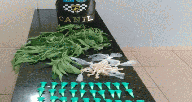 De acordo com informações, o Canil estava em patrulhamento pelo bairro São Carlos VIII, quando viu os dois indivíduos em atitude suspeita. Eles saíram correndo e não foram detidos. Os GMs utilizaram a K9 ÍNDIA ( cão farejador ), que logrou êxito em localizar em meio ao mato uma sacola contendo 73 pedras de crack, 39 epeendorfs de cocaína e dois pés de maconha. As drogas foram encaminhadas à Central de Polícia Judiciária, onde foram apreendidas.