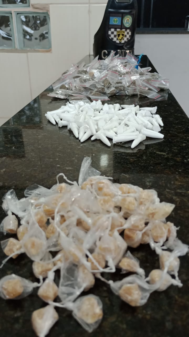 Empregado o trabalho de faro com a K9 Índia, que logrou êxito em localizar em um buraco do registro do SAAE, 05 tabletes de maconha, 161 invólucros de maconha, 98 pinos de cocaína e 76 pedras análogas ao crack. As drogas foram encaminhadas à Central de Polícia Judiciária, onde foram apreendidas.