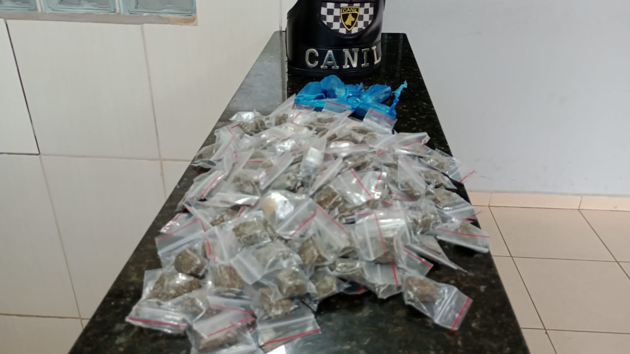 O Canil da GM apreendeu drogas nesta tarde de terça-feira, 13 de setembro de 2022, na Rua João Dagnone, bairro Santa Angelina, São Carlos-SP.