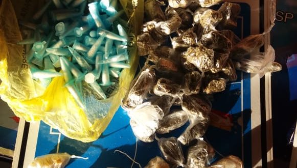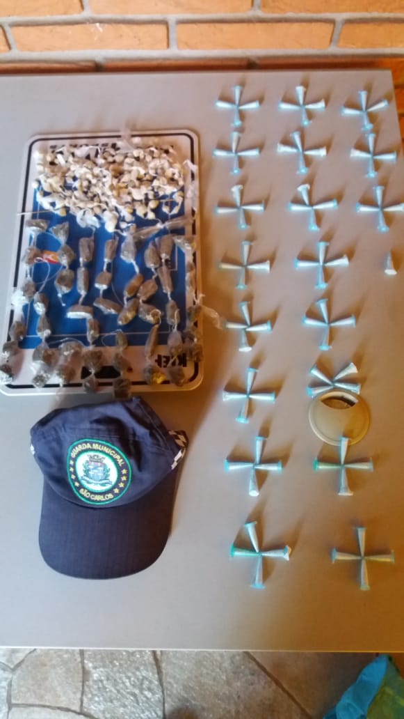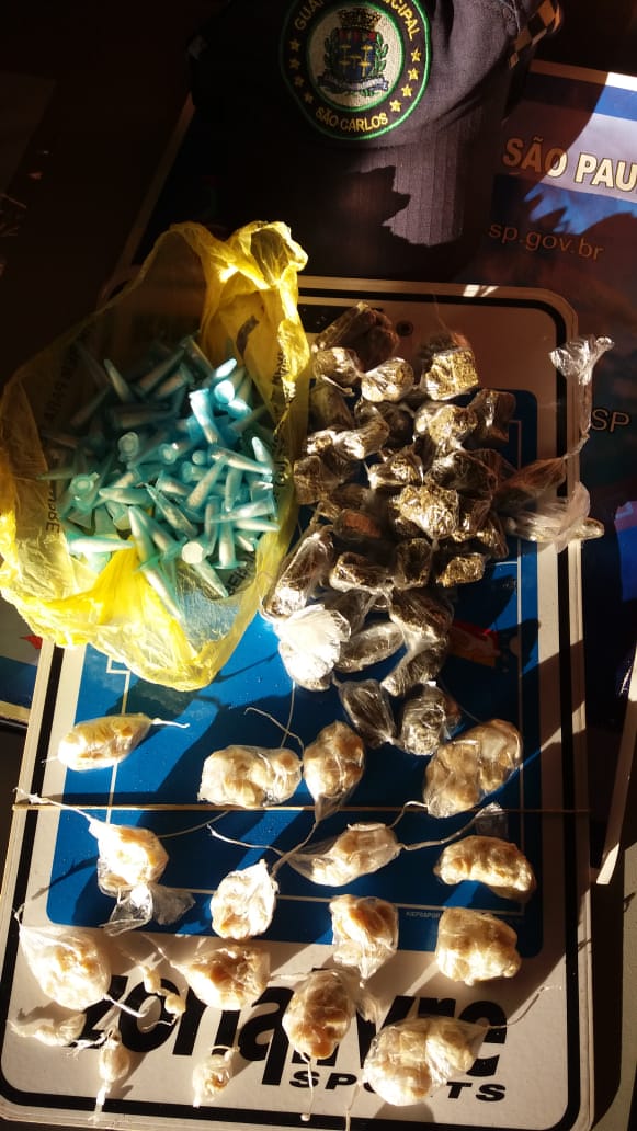 A GM apreendeu drogas nesta tarde de quarta-feira, 1 de julho de 2020, em um terreno baldio ao lado de uma escola no bairro Santa Felícia, São Carlos-SP.