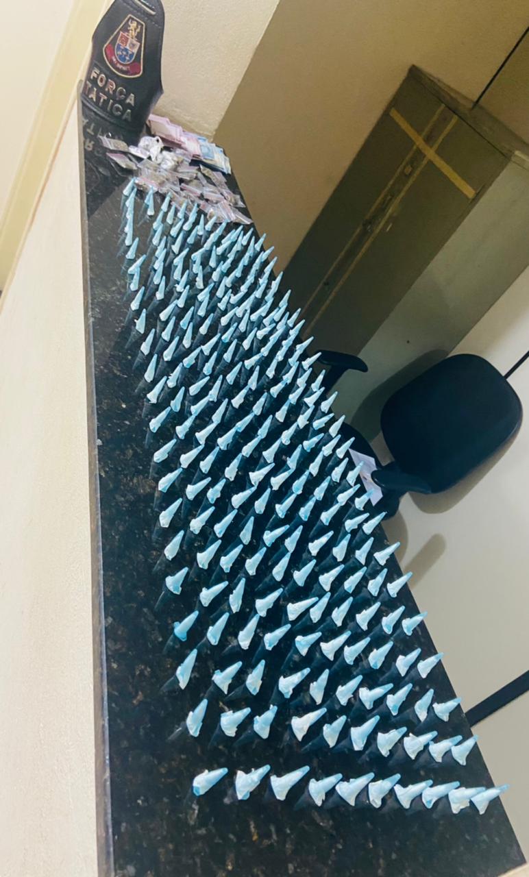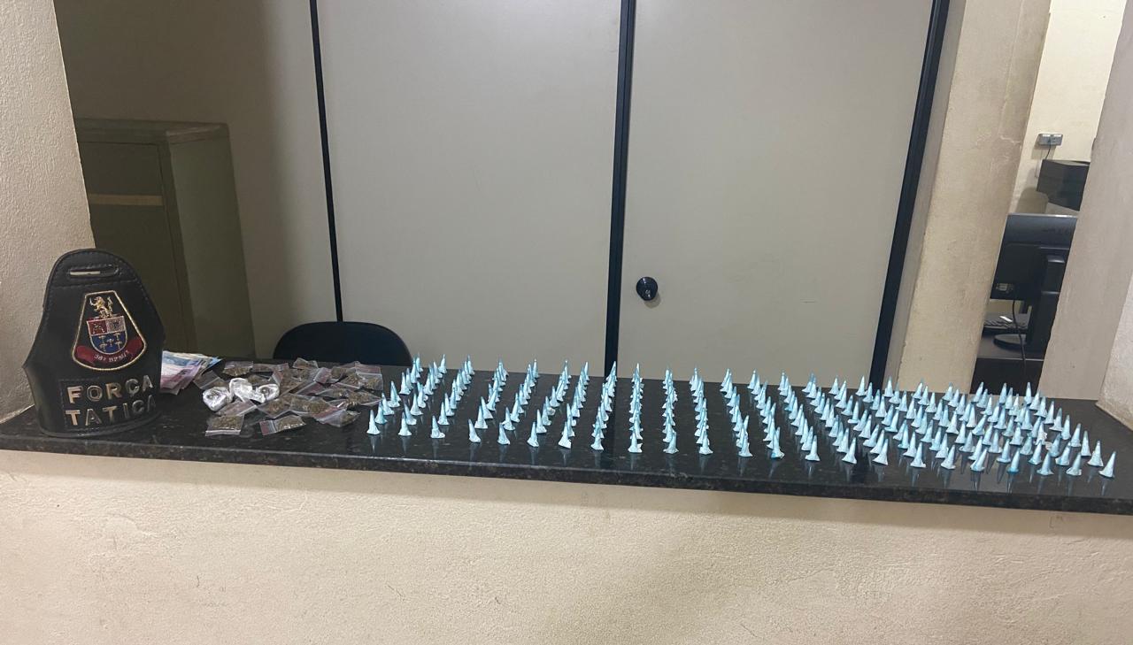 Segundo informações, as equipes estavam em operação, quando abordaram os dois indivíduos. Com eles foram localizados 230 pinos de cocaína,  29 porções de maconha