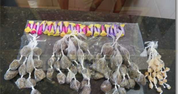 Os indivíduos, um menor de 17 anos e o maior de 22 foram abordados pelos policiais, cabo Luciano e soldado Israel. A detenção aconteceu no final da manhã deste sábado, 18-02-2017. Eles foram encaminhados juntamente com as drogas ao Plantão Policial, onde ficaram à disposição do delegado. O menor assumiu que era o dono das drogas.