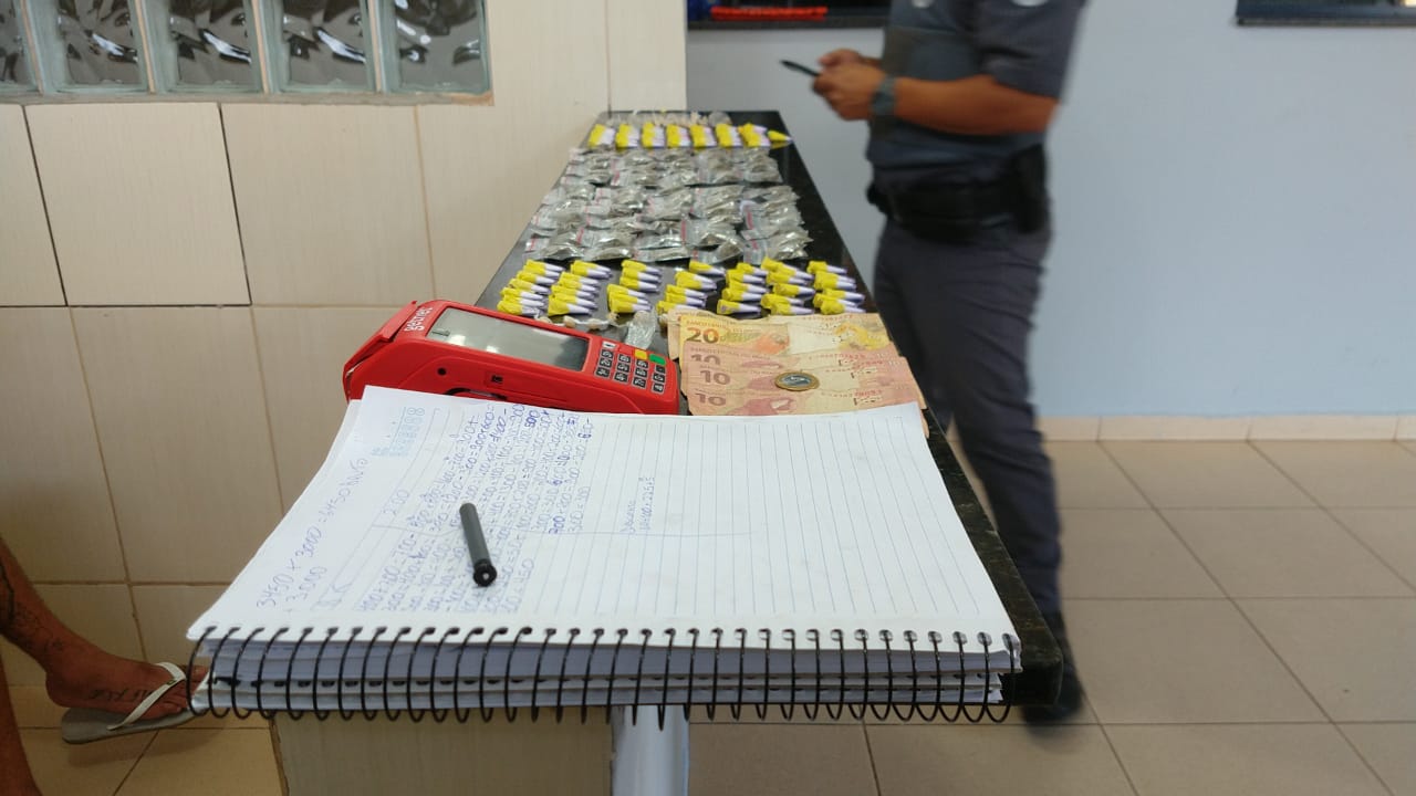 Segundo informações, uma equipe da PM estava em patrulhamento preventivo pelo Cidade Aracy, quando se deparou com a dupla, sendo um menor de 17 anos e outro de 25 anos. Eles estariam entregando algo para outro sujeito. Os dois foram abordados, sendo encontrado com o adolescente certa quantia de drogas. O maior afirmou ter mais entorpecentes, que estariam em sua casa, e entregou aos PMs junto de um caderno com anotações do tráfico, dinheiro e uma máquina de cartões.