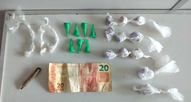 Segundo informações, após o Copom informar que o solicitante teria visualizado um indivíduo trajando camiseta azul e bermuda traficando defronte uma igreja, equipes foram para o local e lograram êxito em aborda os suspeitos. Após busca pessoal foi encontrado um cigarro de maconha . Durante a abordagem foi feita reiterações do solicitante , este acabou informando que o restante das drogas estava proximo a via. Em ato contínuo, foi possível encontrar o restante das drogas.