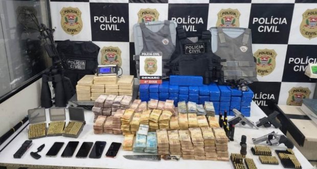 Policiais do Denarc (Departamento Estadual de Prevenção e Repressão ao Narcotráfico), fizeram uma grande operação em Araraquara-SP, que resultou na prisão de dois indivíduos de 43 e 25 anos, por tráfico, além da apreensão de armas, drogas e mais de meio milhão de reais em espécie.