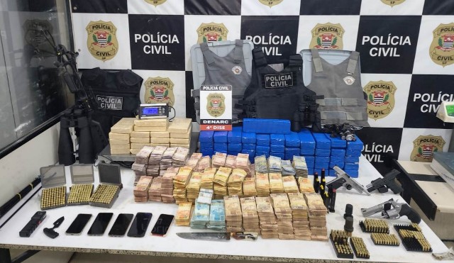 Os policiais retornaram ao imóvel e o motorista da van foi abordado. No veículo foram encontrados mais entorpecentes. Os agentes então adentraram o imóvel e encontraram R$ 565.899 em dinheiro.