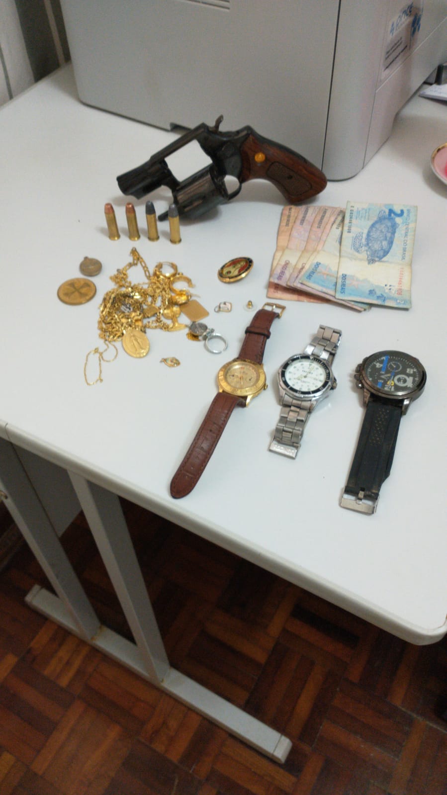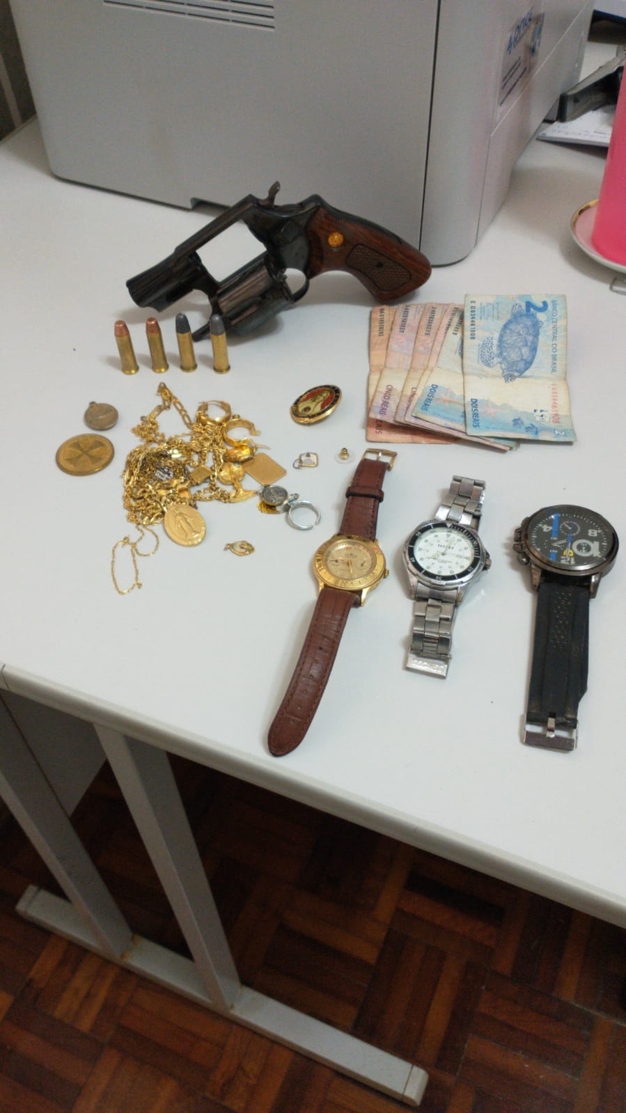 Parte dos produtos do roubo e  um revólver foram localizados.