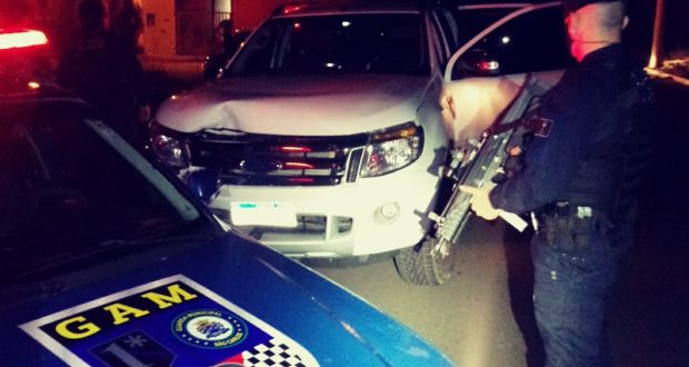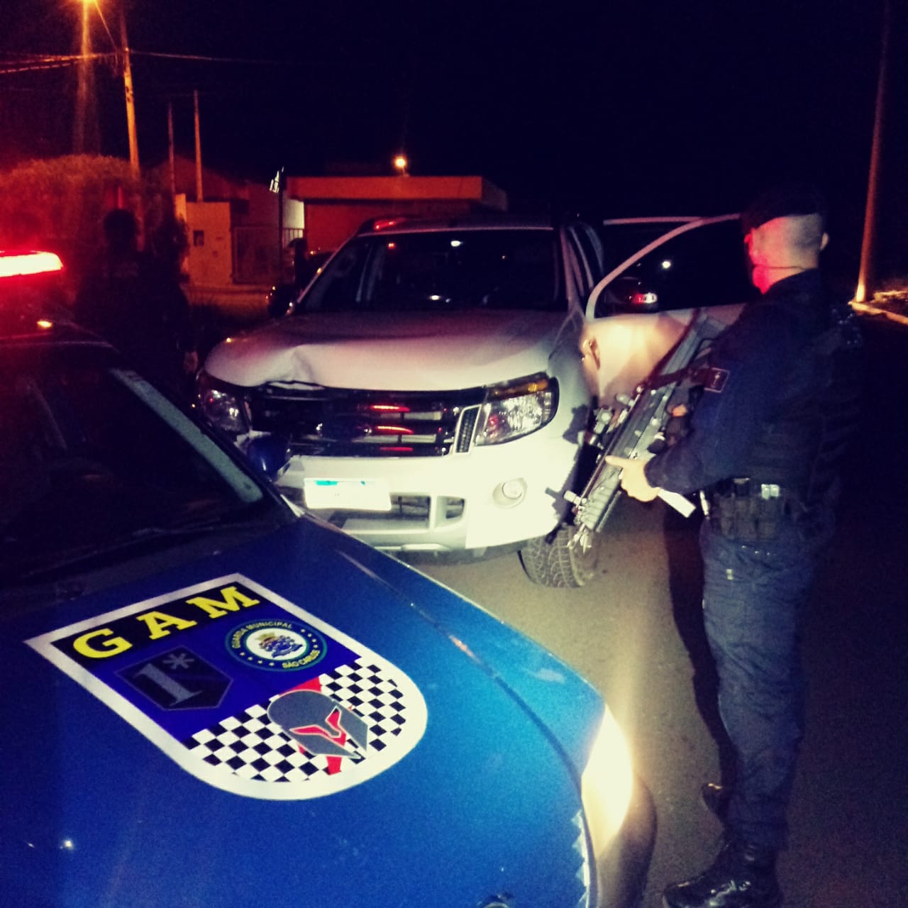 Segundo informações,  era por volta da 0:30, quando os bandidos praticaram o roubo.  Os criminosos roubaram uma caminhonete da cor branca e fugiram.  Uma viatura da  GM que se deslocava para o local se deparou com a caminhonete no bairro Cidade Aracy. A equipe tentou realizar a abordagem,  mas os bandidos fugiram tomando sentido ao bairro Planalto  Verde.  Neste eles colidiram a caminonete, abandonaram a mesma e fugiram a pé.  O cerco foi fechado. Com apoio da PM os combatentes tomaram conhecimento que os criminosos teriam tentado invadir uma casa, mas sem êxito. Neste local eles teriam abandonado uma arma de fogo.  Minutos depois a PM conseguiu deter A.V.C.F, de 21 anos e A.P.B.Jr, de 22. Ambos foram conduzidos à Central de Flagrantes, onde o delegado, dr. Caio Iberê Gobato elaborou o flagrante de roubo e mandou os dois para o Centro de Triagem.