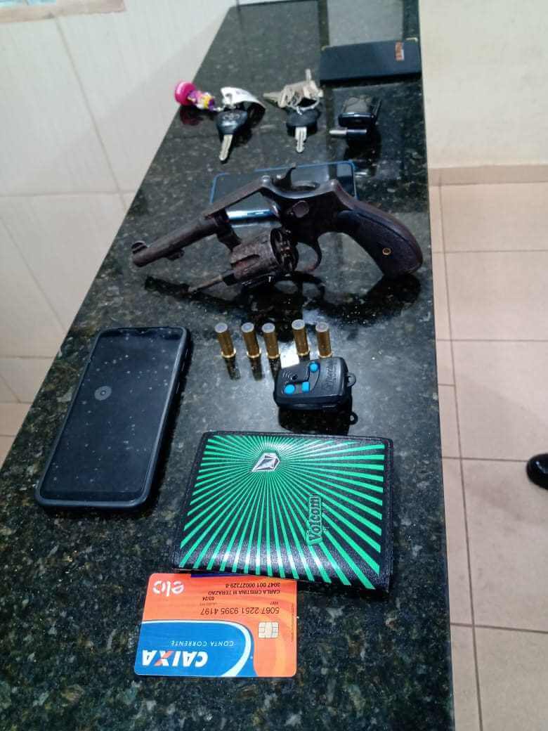 Uma equipe do Rádio Patrulhamento se deslocou ao local e em contato com a vítima, esta   informou que ao estacionar seu veículo,  dois indivíduos morenos se aproximaram e anunciaram o assalto. Os bandidos  levaram  o  veículo Toyota Etios ano 2015  e um celular Samsung s10. A vítima disse que um dos marginais estava em poder de uma arma de fogo.  O mesmo forneceu seu e-mail e senha,  de imediato a equipe começou a rastrear o telefone celular. Com base no rastreamento as equipes deslocaram -se para a Rua Professor Corinto Amato, ocasião onde foram informadas que que dois indivíduos desconhecidos teriam entrado em sua residência. De pronto as equipes realizaram a incursão no interior da residência,  vindo a lograr êxito em localizar os dois indivíduos (Everton e Juliano). Em revista pessoal foi encontrado com Juliano o CLA do carro roubado e  com Everton foi encontrado uma chave de um veículo Fiat,  que o mesmo alegou ser de sua esposa. Ao acionar o botão do controle do alarme foi possível localizar o veículo Palio  na garagem de uma  residência( defronte onde os PMs estavam). Dentro do veículo foram  localizado diversos itens que teriam sido retirados do veículo roubado.  Indagados sobre o fato o dois assumiram ter cometidos  o roubo e informaram o local onde estava o revólver, demais pertences da vítima e o local onde teriam escondido o veículo roubado. Com o apoio das equipes os indivíduos, pertences e veículos foram encaminhados ao Plantão Policial,  onde o delegado de plantonista  tomou conhecimento do fato e ratificou a voz de prisão. O veículo e os pertences foram devolvidos à vítima e os indivíduos permaneceram presos.