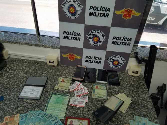 Além dos materiais usados para o crime, junto com os criminosos foram encontrado mais de R$ 2.700,00 e $ 1.300,00 dólares em dinheiro e um cartão de uma das vítimas.