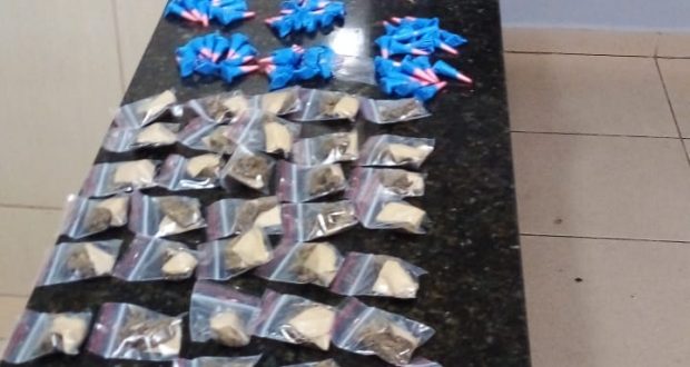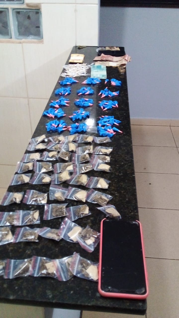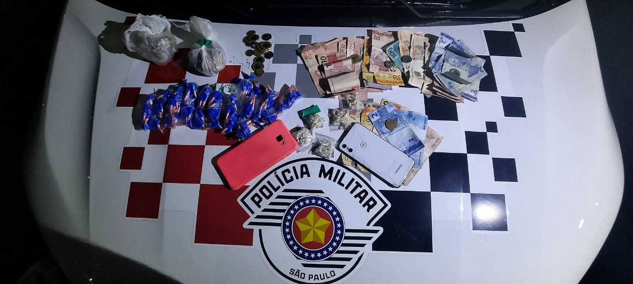 Segundo informações, uma equipe estava em patrulhamento pela Rua Tiete, quando avistou dois indivíduos que correram com a aproximação da viatura. Ambos foram abordados. Um estava com uma mochila nas costas e o outro com uma sacola em mãos contendo entorpecentes e dinheiro em espécie totalizando, 147 pinos de cocaína (107 gramas), 47 porções de ” maconha ” (110 gramas) e 142 pedras de ” crack ” ( 24 gramas ) e o valor de R$ 645,70