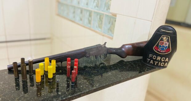Os policiais então realizaram contato com o morador da residência , porém nada de ilícito foi localizado em sua casa. Questionado sobre seu comparsa, ele teria indicado  a residência localizada defronte  a sua. Ainda em tempo a equipe visualizou o indiciado  na garagem, abrindo o portão para sair e de pronto foi abordado. Com o mesmo nada de interesse policial foi localizado.  Indagado ele  negou participação no roubo e informou a equipe que não residia no local, contudo, ao realizar a busca no imóvel foi localizado no interior da residência um RG em seu nome, 01 espingarda calibre .20 (idêntica à utilizada no roubo) e  17 munições intactas de diversos calibres.