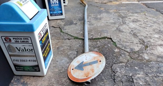 Dois indivíduos foram detidos pela PM nesta manhã de sexta-feira, 30 de abril de 2021, suspeitos de furto de uma placa de sinalização. A dupla foi abordada pela PM na Rua Gildney Carreri, região do Santa Felícia, São Carlos-SP.