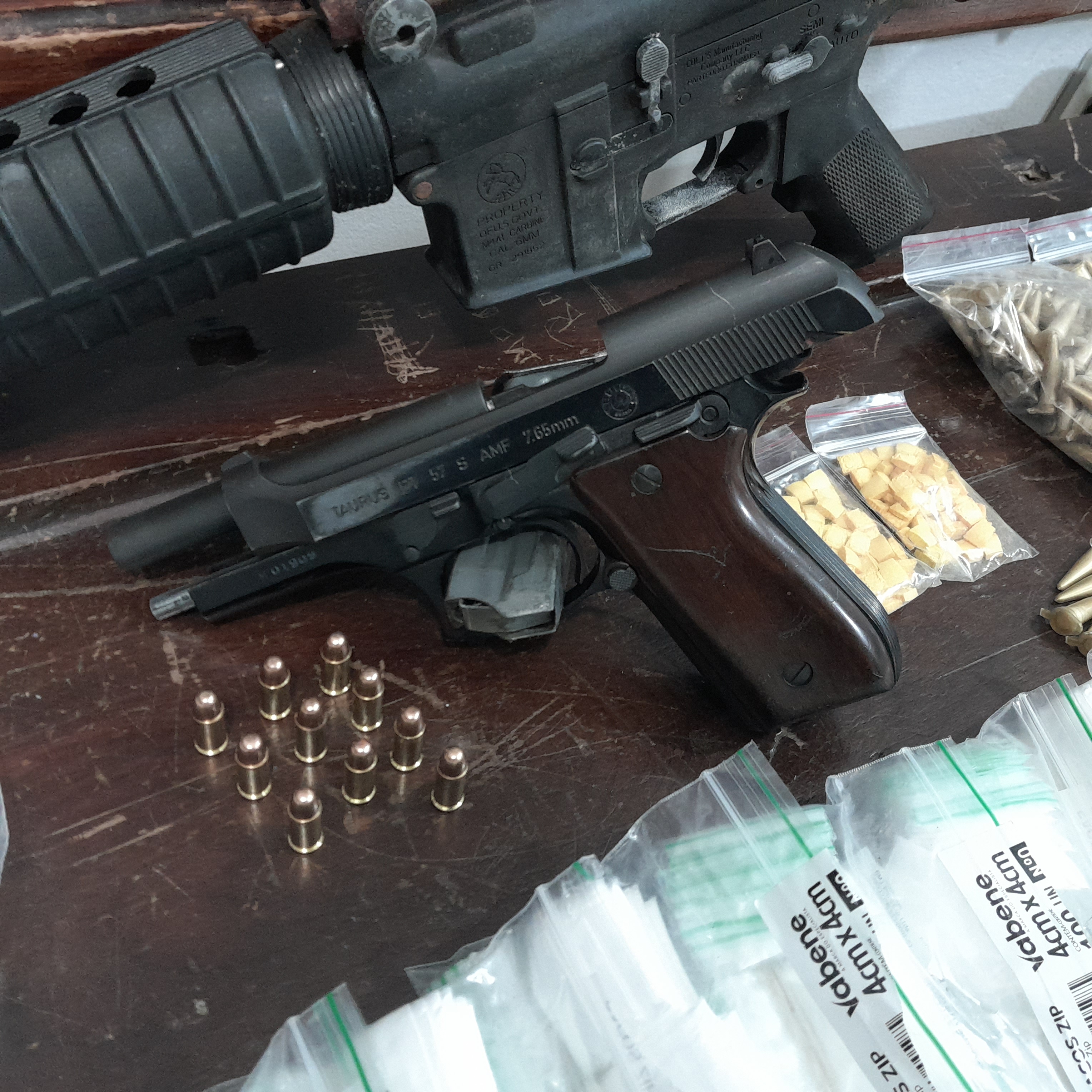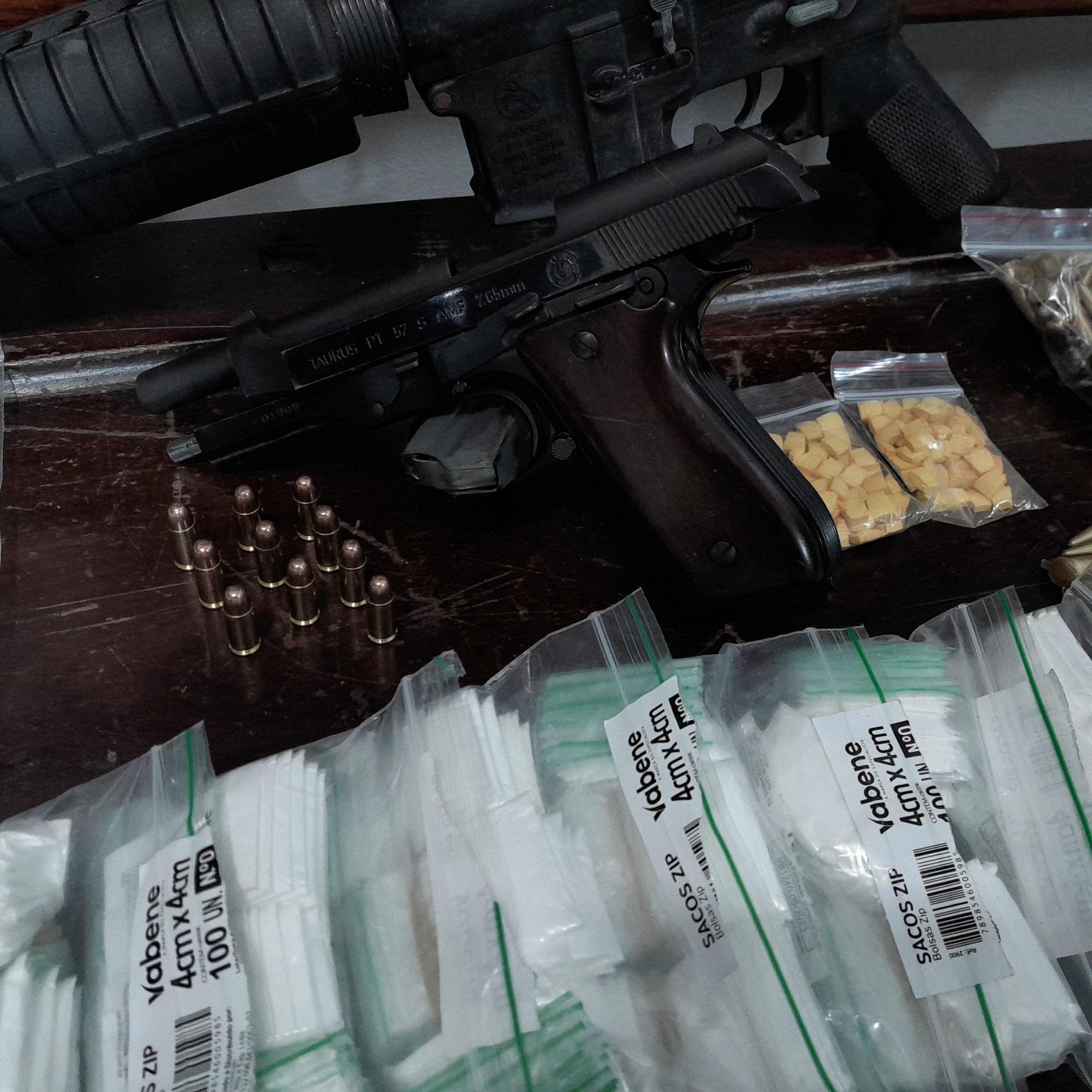 De acordo com informações, os dois suspeitos saíram de uma casa na Rua Romeu Casale, bairro Jardim de Cresci e em uma caminhonete tomaram sentido a rodovia Washington Luís. Depois seguiram pela SP-215, sentido a cidade de Descalvado. Viaturas da Força Tática fecharam o cerco e abordaram a caminhonete. Em poder dos abordados e nem na caminhonete nada de ilícito foi encontrado. Com um dos averiguados foi encontrada a chave da casa de onde eles haviam saído minutos antes. Indagado a respeito da chave, um dos abordado confessou que era da casa e que lá havia droga e arma de fogo. Os policiais se deslocaram até a residência e encontraram uma pistola , dinheiro, drogas e materiais usados para o trafico. J. A.T, de 19 anos e C.O.A, de 31, foram encaminhados para a Central de Polícia Judiciária, onde foram qualificados como investigados e liberados.
