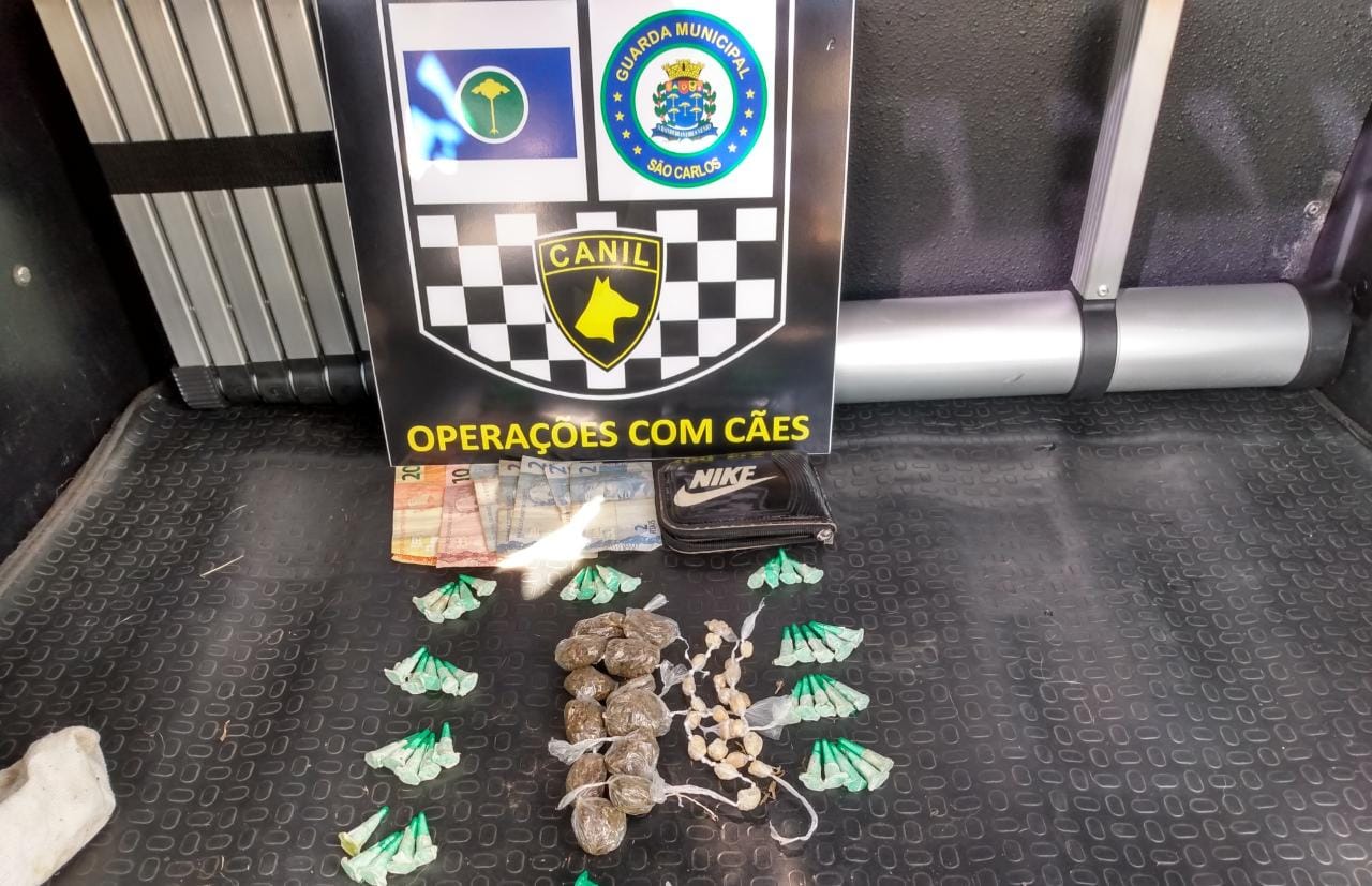 Dois indivíduos suspeitos de tráfico de drogas foram detidos pela Guarda Municipal nesta tarde de quarta-feira, 10 de março de 2021, na Rua Procópio Toledo Malta, São Carlos-SP.
