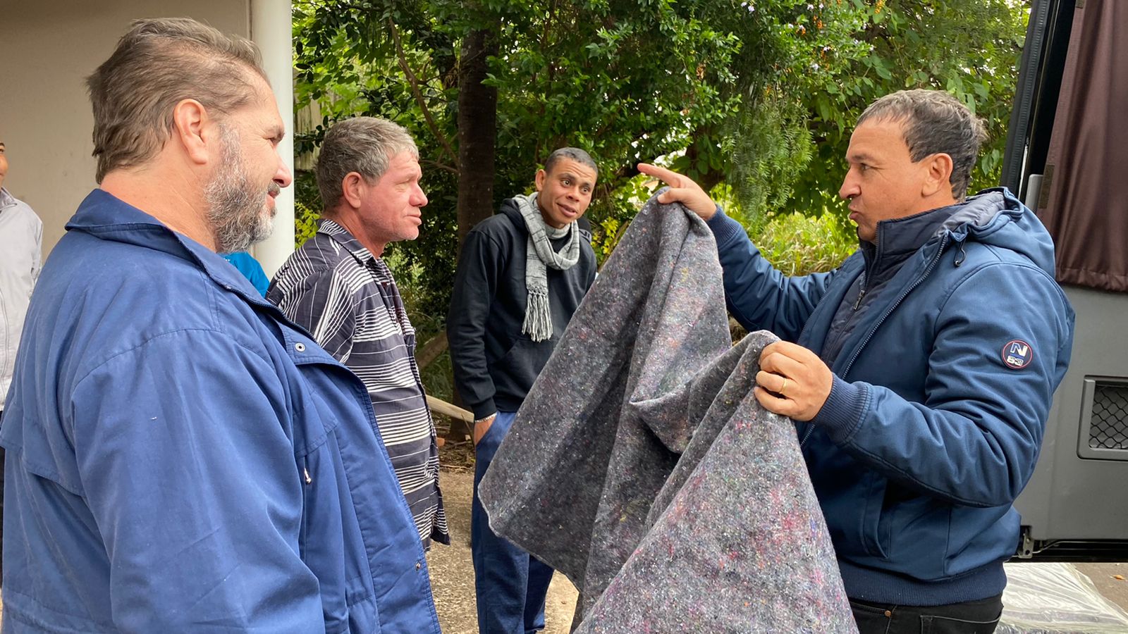 O vice-prefeito de São Carlos Edson Ferraz e seu amigo e empresário Bernardo Abesalão, em uma ação conjunta, compraram 210 “cobertores do bem” e distribuíram em várias instituições que estão acolhendo moradores de rua nesse período de baixa temperatura.