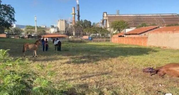 Uma égua morreu após ser brutalmente atacada por dois cães da raça pit bull na manhã desta terça-feira (29), por volta das 6h20, em um terreno localizado na Rua João Batista Chiolino, no bairro Residencial Trolli, em Matão. Mesmo após a morte da égua, o filhote, um potrinho, ainda tentava se amamentar ao lado do corpo da mãe.