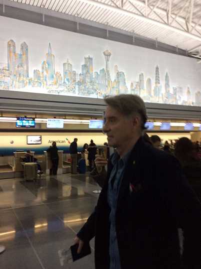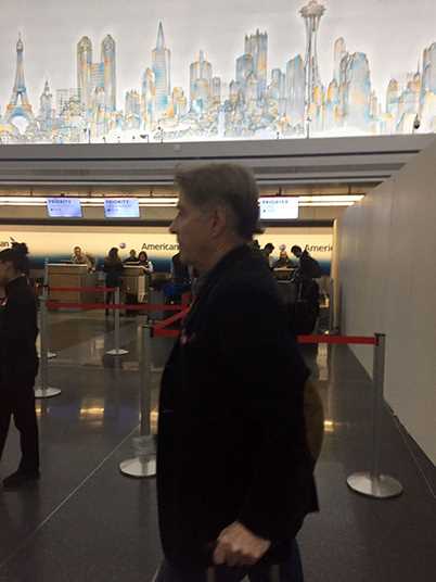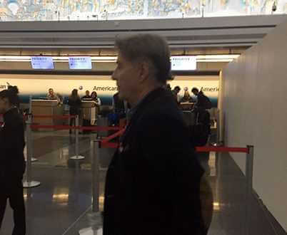 Na noite de ontem, ele embarcou no voo 973 da American Airlines, de Nova York para o Rio, em classe executiva.