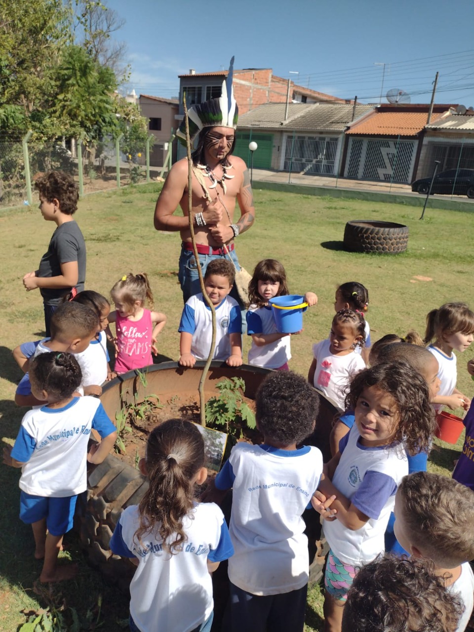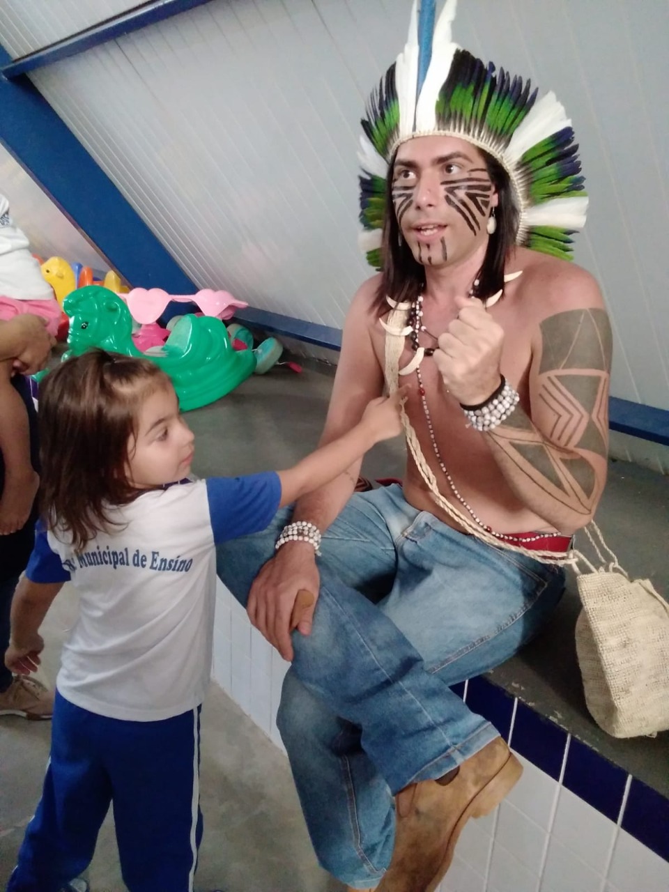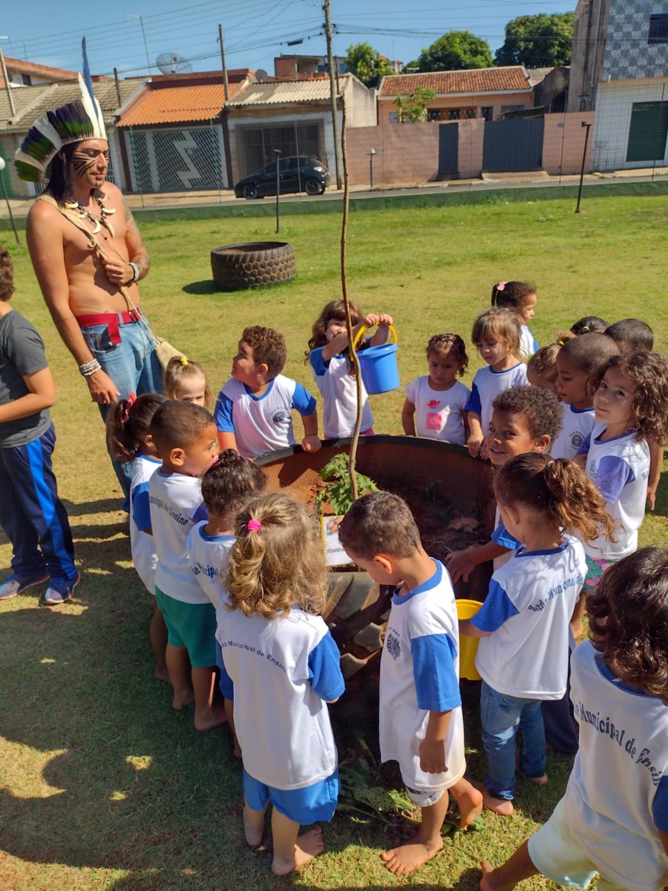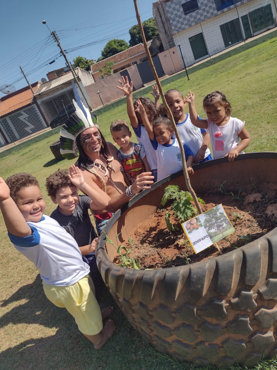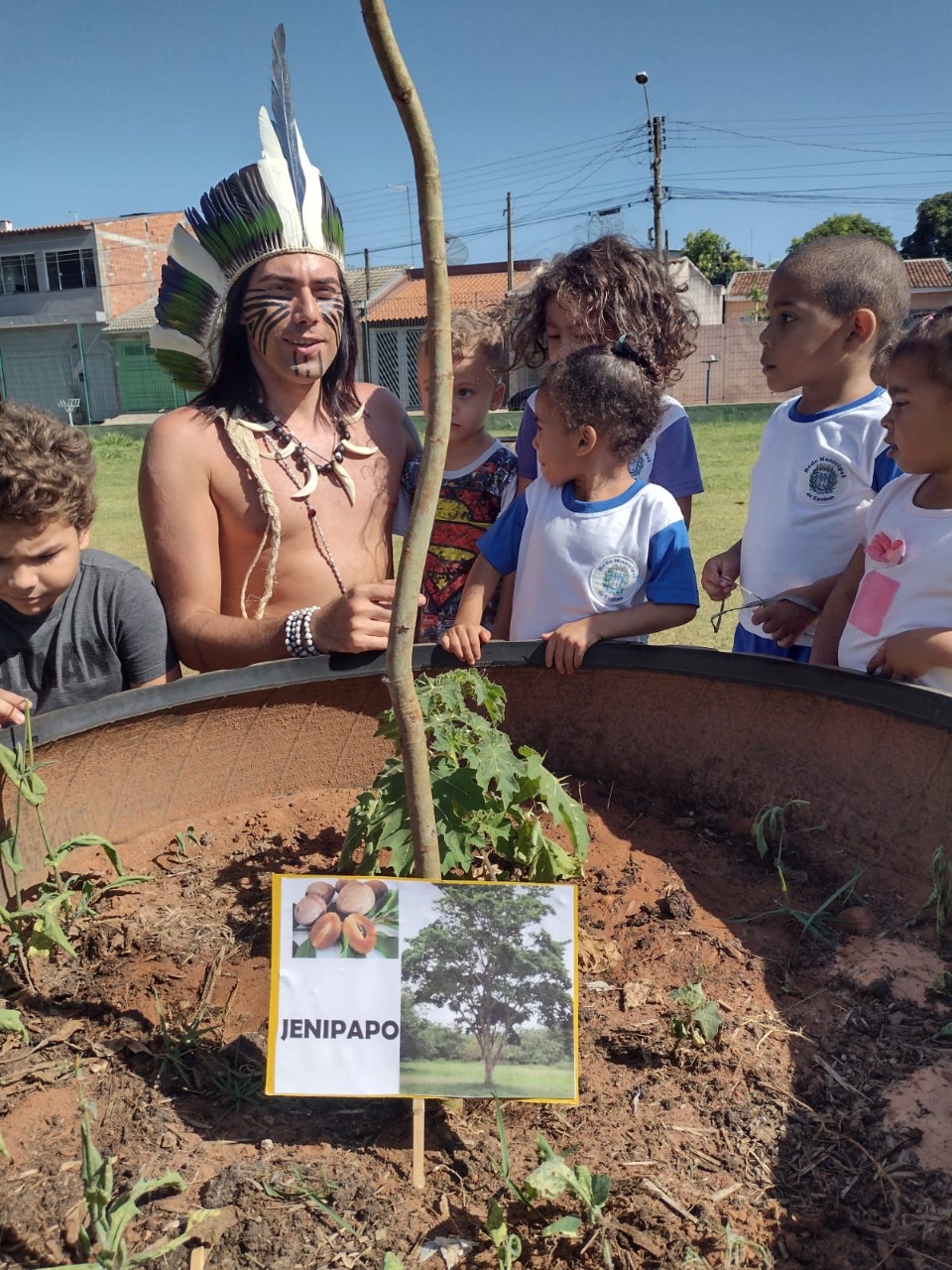 Uma visita especial encantou alunos e a equipe da Escola Municipal “Profª Edith Aparecida Benini”. A unidade escolar teve a honra de encerrar as atividades da “Semana Indígena”, que aconteceu nos dias 25 a 29 de abril, recebendo o indígena Nhandel Gwaçu, que oportunizou todos da unidade escolar a prestigiar as vivências com cantos e danças com instrumentos típicos, além de pintura típica, assuntos pertinentes como respeito aos costumes e ao meio ambiente fazendo plantio de Jenipapo árvore .