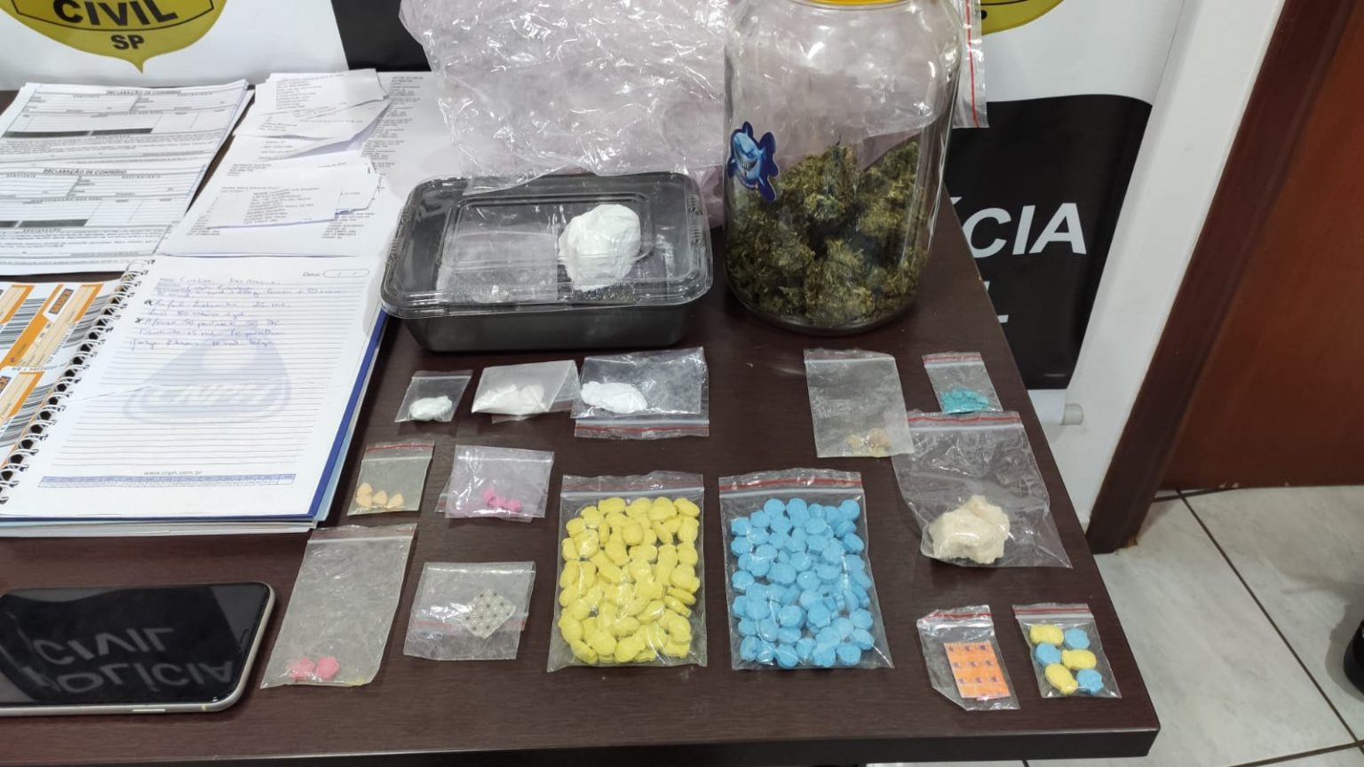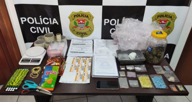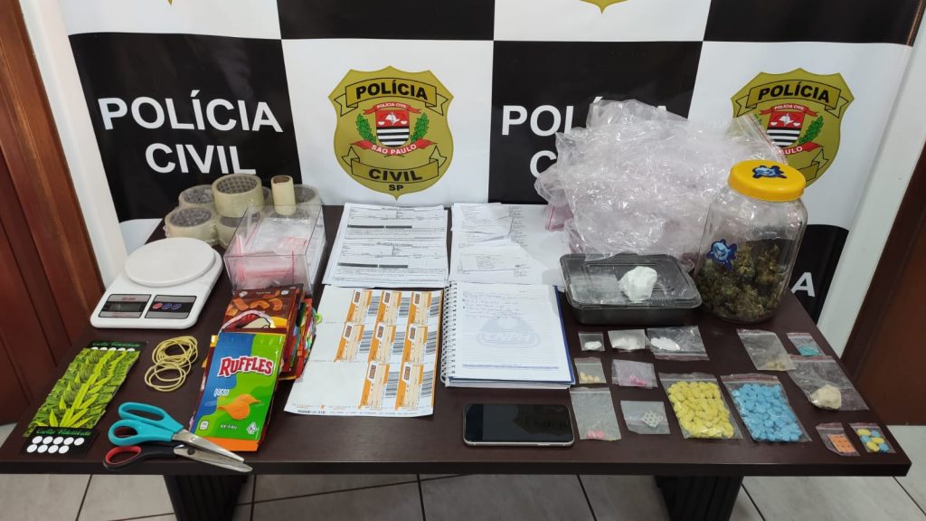 No comércio, que funcionava também como residência, os policiais da DISE – Delegacia de Investigações Sobre Entorpecentes localizaram 147 comprimidos MDMA, 28 selos de LSD, frações brutas e fracionadas de cocaína, metanfetamina, maconha, além de caderno com anotações, material para embalo de drogas, balança de precisão, selagem de Correios e documentos de postagens. Ela é acusada de vender droga pela internet e enviar pelos Correios. A investigação começou com a Polícia Civil de São José do Rio Preto, que passou a monitorar uma encomenda enviada para aquele município e notificou a DISE de Araraquara. O pacote estava recheado de drogas, segundo a investigação, que prendeu os destinatários. A traficante usava embalagens de salgadinhos para disfarçar e “cartão fidelidade” para manter a clientela. Ela foi encaminhada para a cadeia feminina de São Carlos.