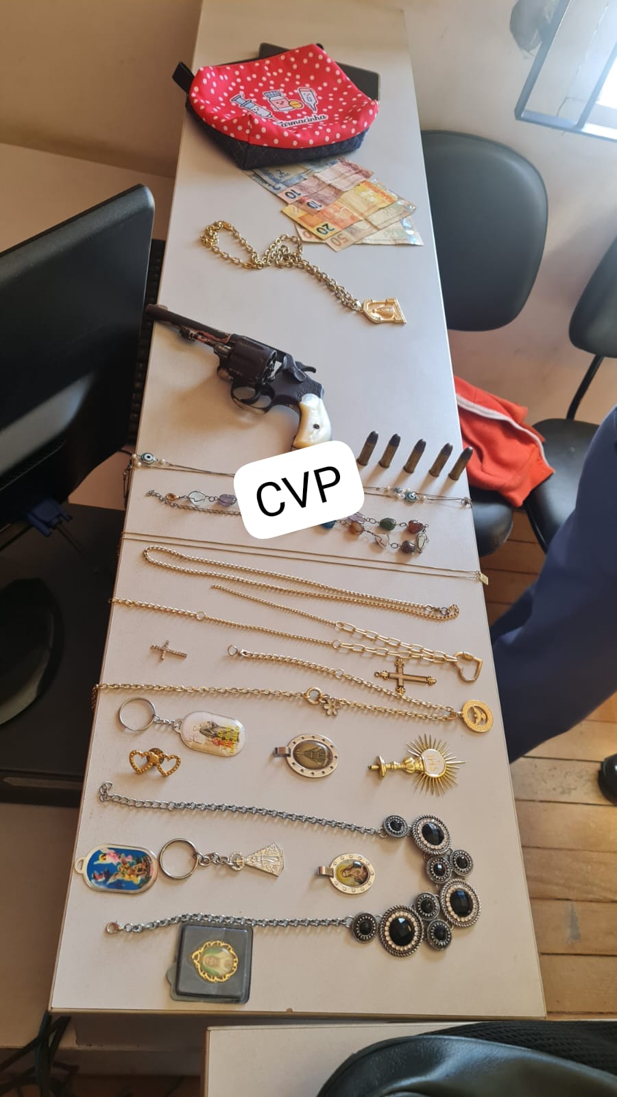 De acordo com boletim de ocorrência, por volta das 7h30,  a PM foi comunicada de um roubo a residência na referida avenida e os assaltantes teriam evadido em um Palio  para o Centro de Dourado. Uma viatura da PM em patrulhamento deparou com dois sujeitos saindo correndo de um terreno baldio.  A.J.F, de 56 anos, o qual trajava uma camisa do Palmeiras se deitou no chão, já seu filho,  M.P.F, 23 anos, o qual usava moletom vermelho empreendeu fuga e naquele momento não foi detido. A.J.F,  ao ser revistado, foram localizados nos seus bolsos joias, bijuterias e Dólares. Ao ser questionado a respeito do roubo, ele confessou o crime e disse que o indivíduo que havia fugido era seu filho   M.P.F.  O detido acabou relatando que ele, o filho e Adriano, irmão de M.A.Q.S, este namorado da secretária do lar, C.C.V.V, 34 anos, teriam praticado o roubo.  Já a empregada  C.C.V.V e  M.A.Q.S, seriam os que tinham arquitetado o roubo. A empregada teria facilitado a entrada dos assaltantes na casa. C.C.V.V e  M.A.Q.S, foram detidos no Hospital de Dourado. Parte dos objetos roubados foram localizados com o homem de 56 anos e outra parte no terreno baldio. Os quatro detidos foram encaminhados para a Delegacia de Polícia Civil, autuados em flagrantes pelo delegado, Dr. Gilberto de Aquino e recolhidos ao Centro de Triagem de São Carlos. Adriano não foi preso, mas a Polícia Civil, deverá pedir a prisão do mesmo.