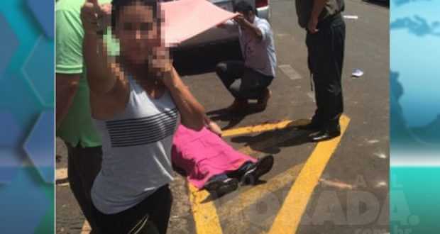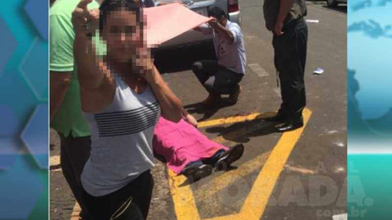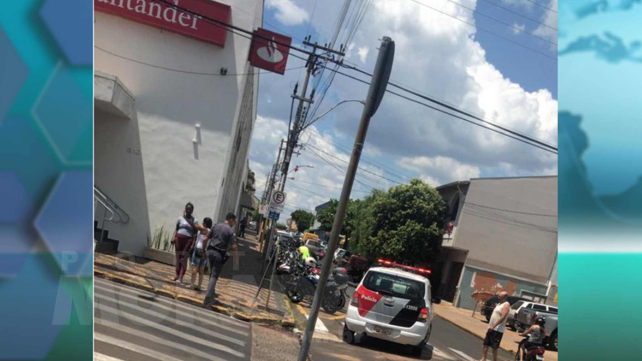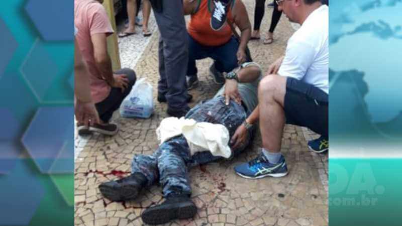 O policial foi atingido e caiu na calçada. Ele foi socorrido pelo SAMU e não corre riscos.