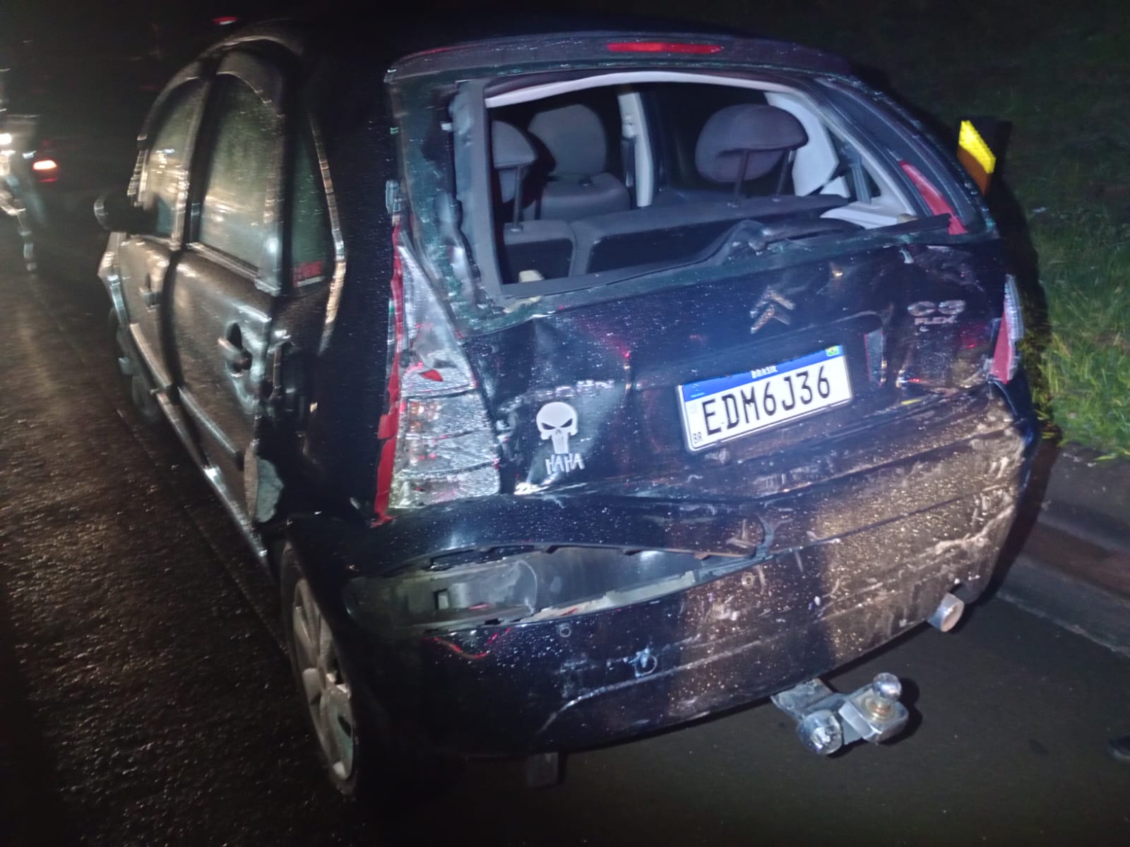 Um engavetamento entre 4 carros e um ônibus, ocorrido nesta segunda-feira, 17 de abril de 2023, na rodovia SP-215, com alça de acesso da Rua José Augusto de Oliveira Sales, São Carlos-SP, deixou duas pessoas feridas.