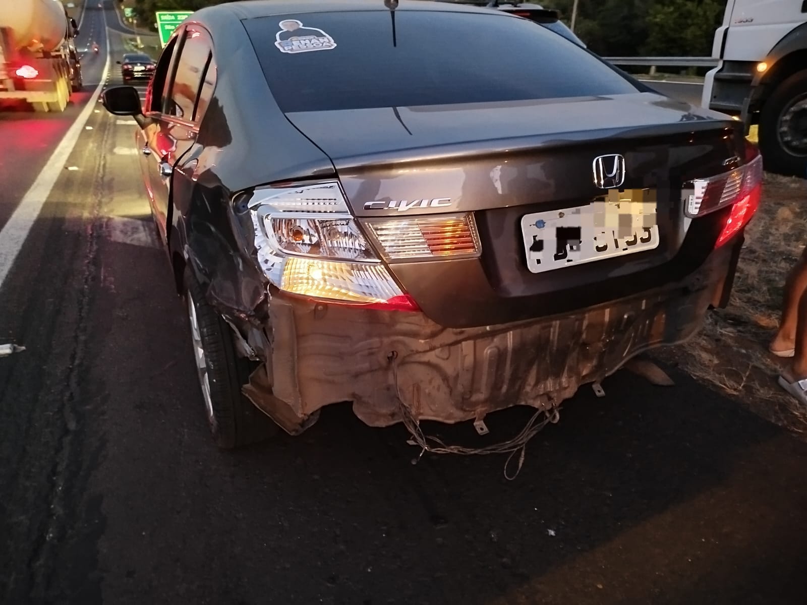 Três carros e um caminhão se envolveram em um engavetamento nesta tarde de sexta-feira,  26/07/2024, na rodovia Washington Luís,  região do pontilhão  da SP- 318, São Carlos-SP.