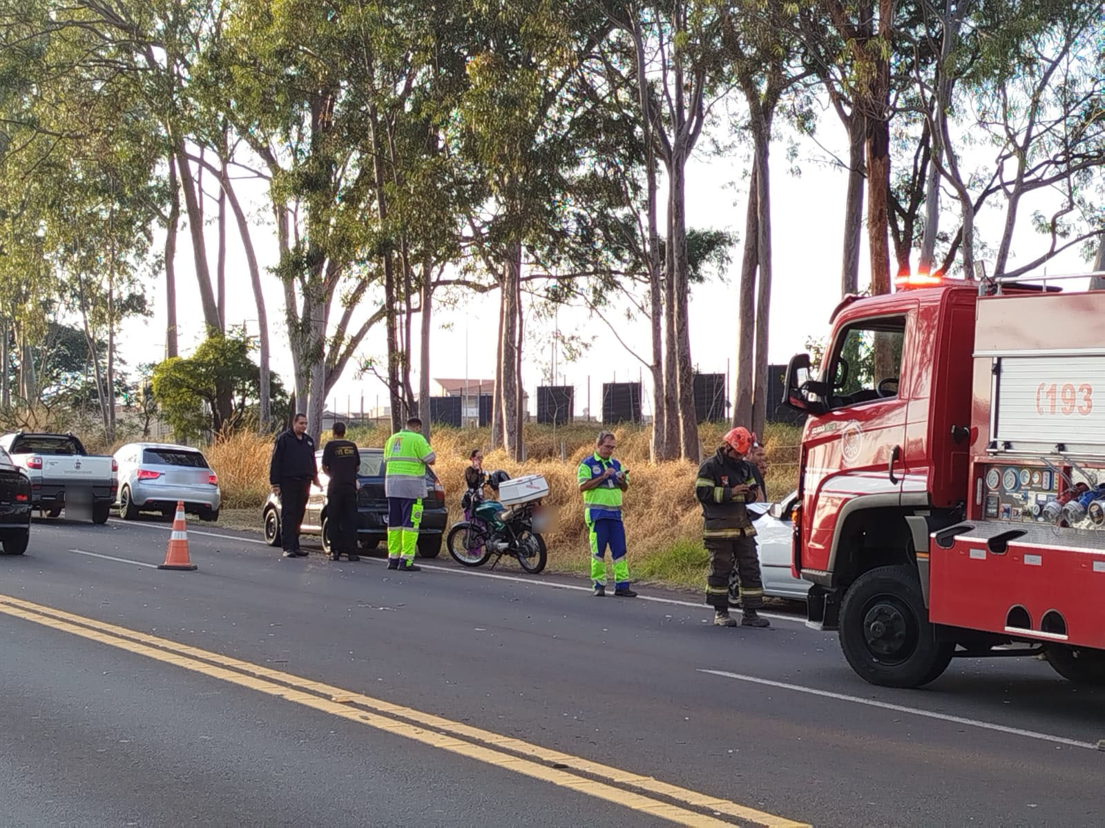 De acordo com informações, o Corpo de Bombeiros e o SAMU foram para o local e encontraram um ocupante de um dos carros e um da moto feridos. As duas vítimas foram socorridas com ferimentos leves e encaminhadas para a Santa Casa de São Carlos. Os outros envolvidos não ficaram feridos e permaneceram no local esperando a Polícia Rodoviária.