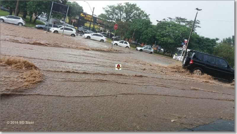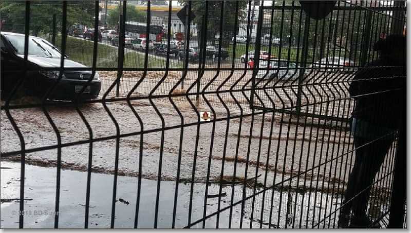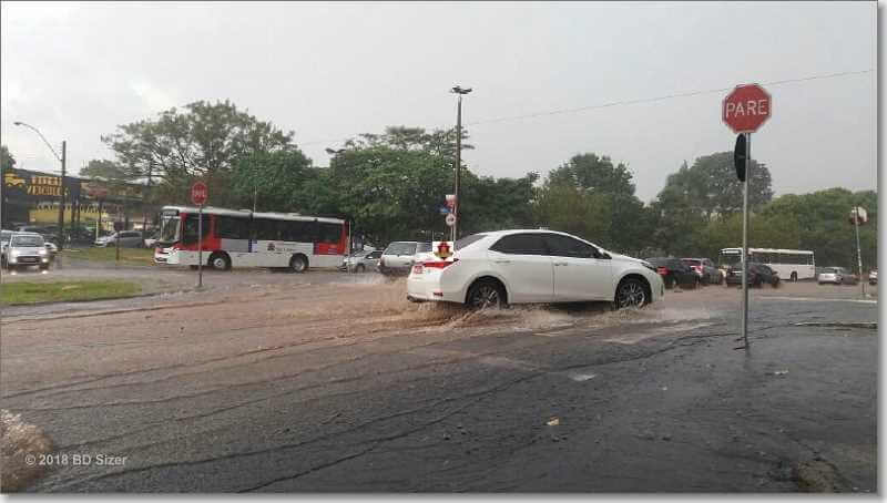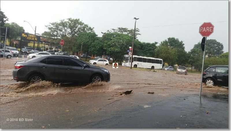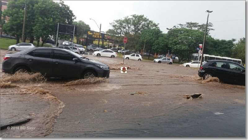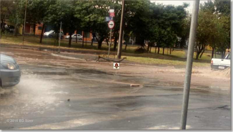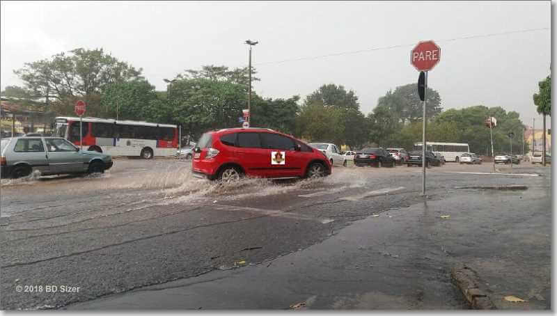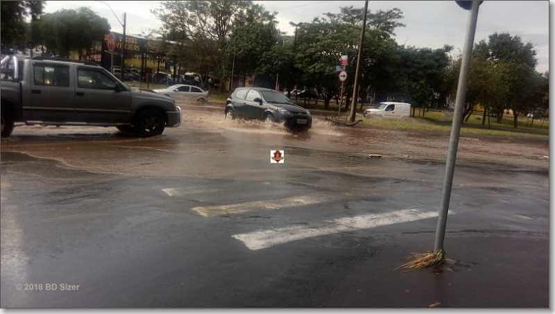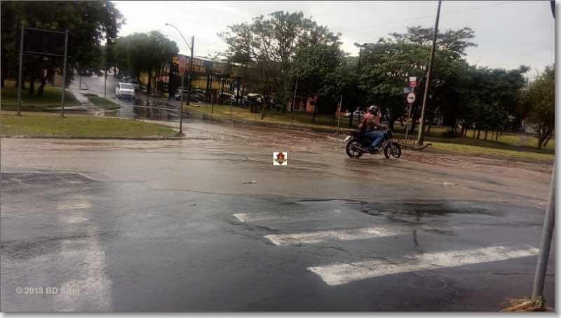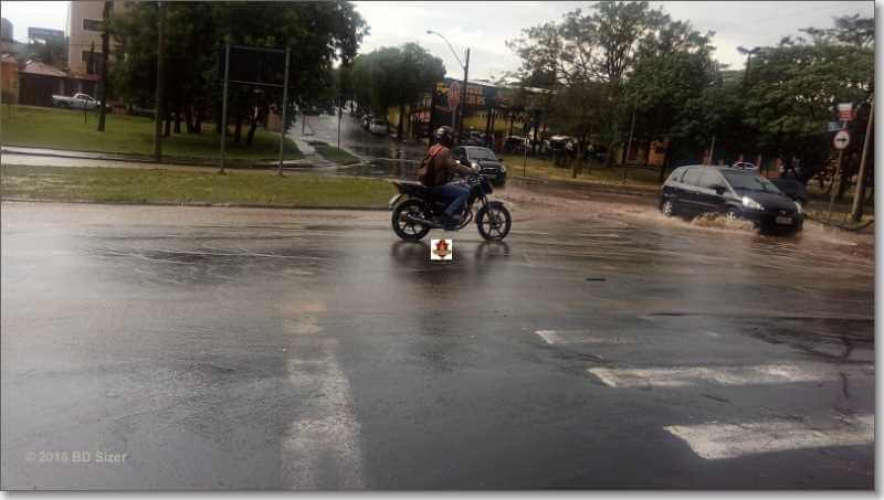 Segundo informações, a moto ocupada por um casal transitava pela Avenida Trabalhador São-carlense, mas chovia muito. No referido cruzamento, devido a forte enxurrada, o motociclista se desequilibrou e caiu. A moto chegou a ser arrastada pelas águas. Funcionários de um supermercado vendo o casal em sufoco prestaram socorro e acionaram o SAMU, o qual socorreu o homem com forte dor no ombro. A mulher apesar de assustada, nada sofreu.
