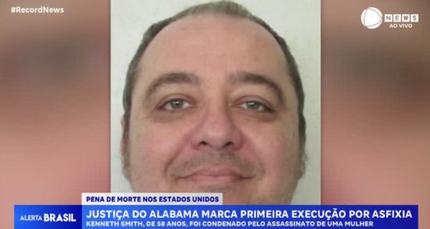 A Justiça do Alabama, nos Estados Unidos, marcou para amanhã, quinta-feira (25), a primeira execução por asfixia com nitrogênio no país. O método será aplicado em Kenneth Smith, de 58 anos, que foi condenado à morte pelo assassinato de uma mulher, há três décadas.