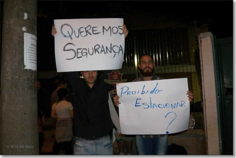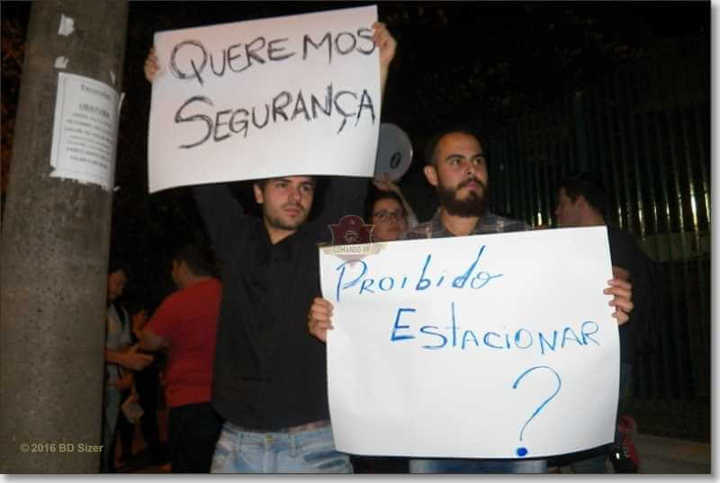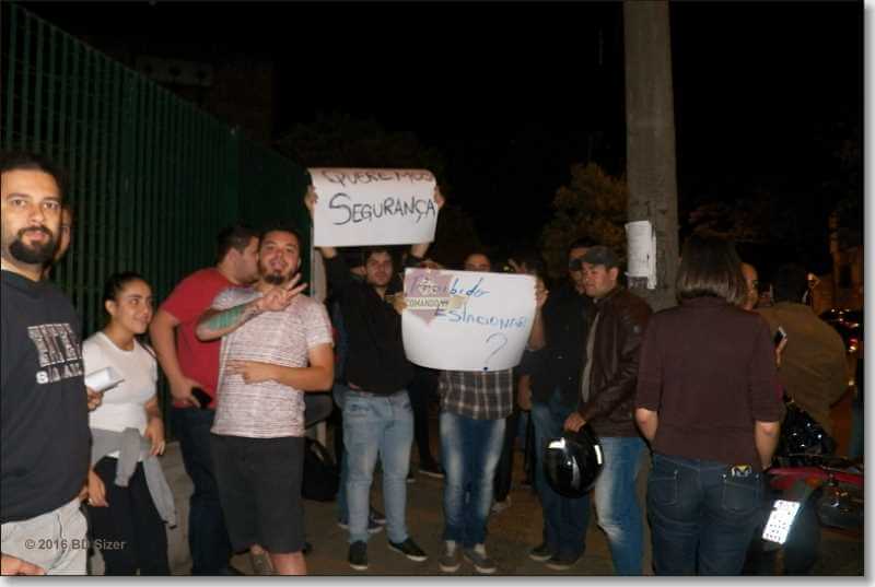 Segundo os estudantes, são frequentes furtos de veículos e no interior de veículos. Eles relataram também que o local devido os galhos de árvores, os quais cobriam as lâmpadas, as ruas nas proximidades estavam muito escuras e por este motivo, os marginais aproveitavam para arrombar os carros e praticar furtos. Eles reclamam também da falta de viaturas da PM e que os responsáveis pela escola não deixam os estudantes usarem o estacionamento. Na noite da manifestação uma viatura da PM passou diversas vezes no local, fazendo com que os estudantes se sentissem em segurança.