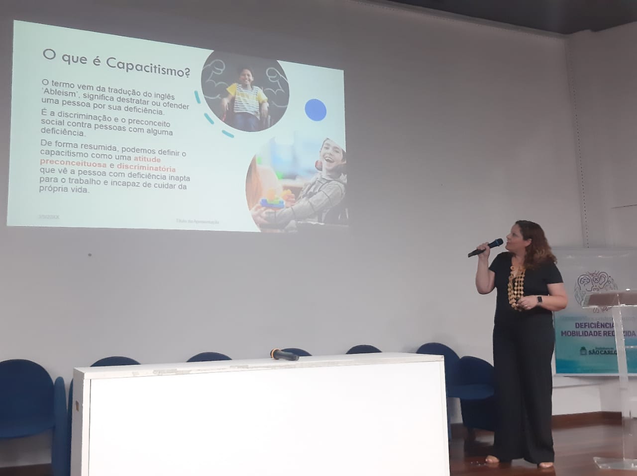A doutora em ciências sociais, assistente social na USE da UFSCar, Francy Mary Alves Back, fez a primeira palestra, com o tema capacitismo. Em seguida, Rozimarie Teixeira Braz Fernandes, fundadora da ONG Espaço Azul e especialista em análise do comportamento pela UFSCar, trouxe o tema autismo em palestra. “A apresentação dos temas visa promover a inclusão da pessoa com deficiência no mercado de trabalho, integrando e garantindo os valores básicos da igualdade do tratamento e oportunidade, da justiça social, do respeito à dignidade e ao bem-estar”, ressaltou a secretária Lucinha Garcia.