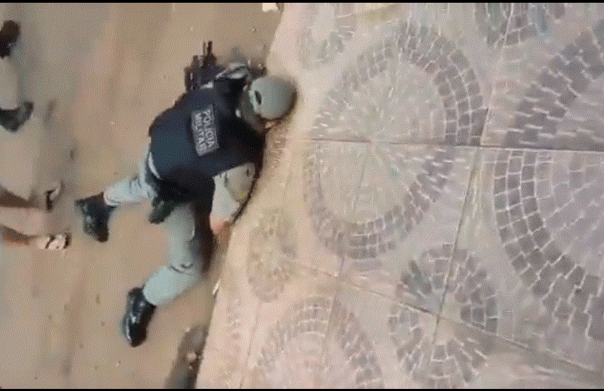 Como podemos ver nas imagens, os policiais estavam realizando uma abordagem contra um indivíduo. Em questão de segundos, o bandido reagiu tomou  a arma do PM e efetuando um  único disparo que ceifou sua vida.