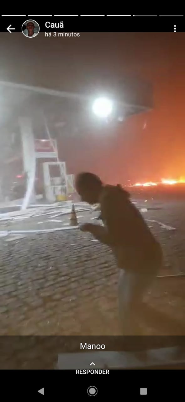 Em um dos vídeos é possível ver que as chamas atingem parte de um caminhão-tanque parado no estacionamento do posto. O fogo avança sobre o veículo, até que ocorre a explosão. É possível observar a queda de destroços e a destruição da estrutura do posto.