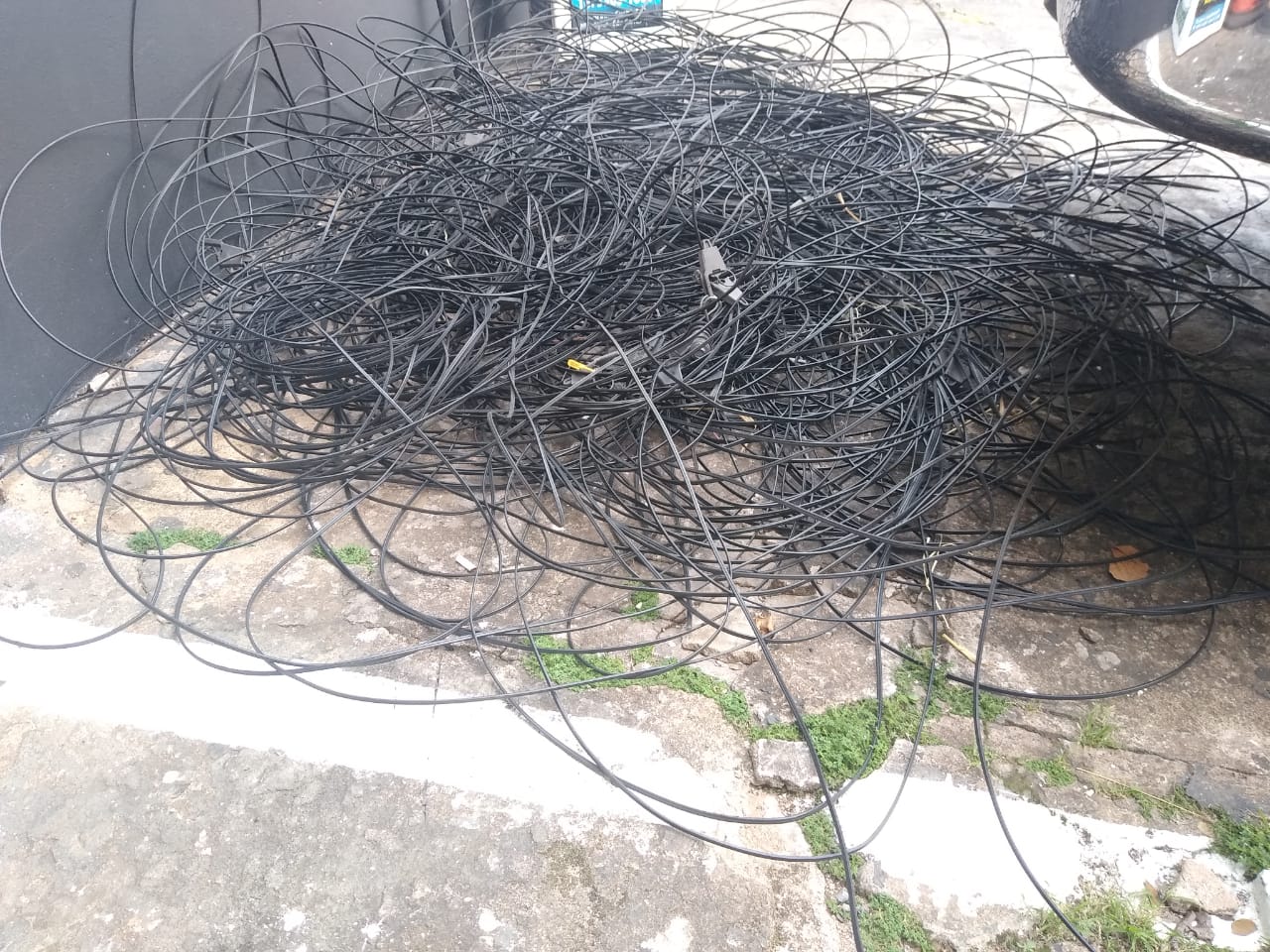 Diversos metros de fios de uma empresa de telefonia foram entregues nesta manhã de sábado, 20/02/2021, no Plantão Policial de São Carlos-SP.