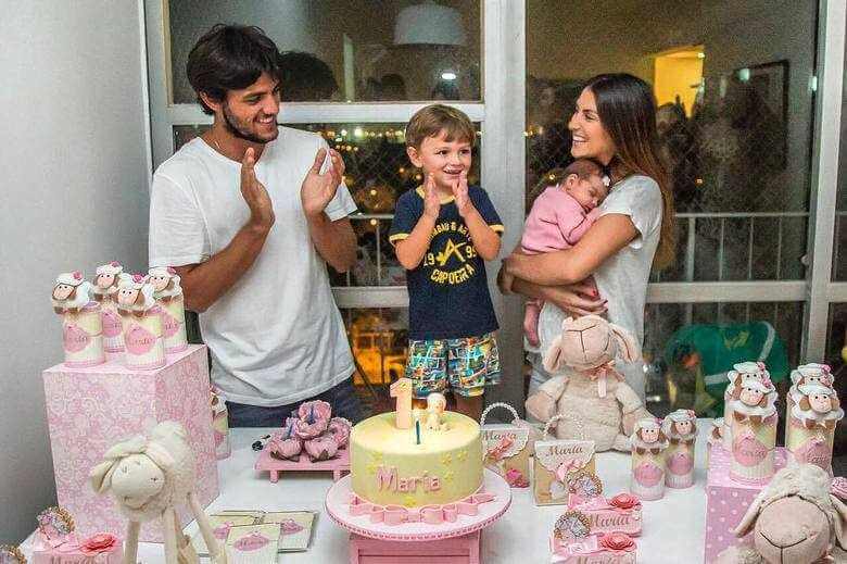 Felipe Simas e Mariana Uhlmann comemoraram um mês da filha caçula, Maria. Neste sábado (18), a mamãe coruja compartilhou alguns cliques fofos da festinha da filhota.