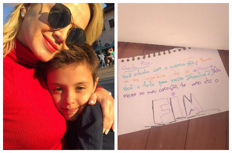 Filho de Eliana escreve bilhetinho e coloca debaixo da porta