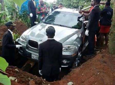 Um homem abastado e identificado apenas como Azubuike ousou no enterro do pai, no vilarejo de Mbosi (Nigéria). Para homenagear o falecido, o nigeriano dispensou o tradicional caixão e sepultou o corpo em um carro de luxo.