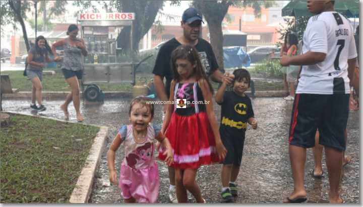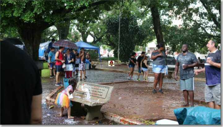 A chuva forte que caiu nesta tarde de domingo, 3 de março de 2019, não intimidou os foliões em São Carlos-SP. Dezenas de pessoas foram curtir o Carnaval na Praça Da XV. Com direito muitas marchinhas.