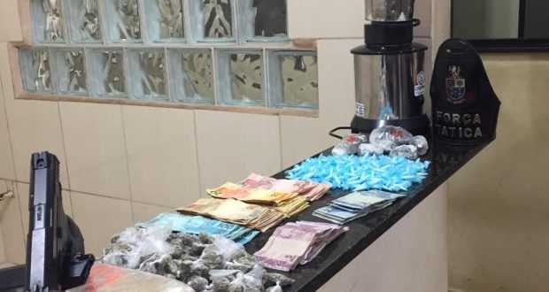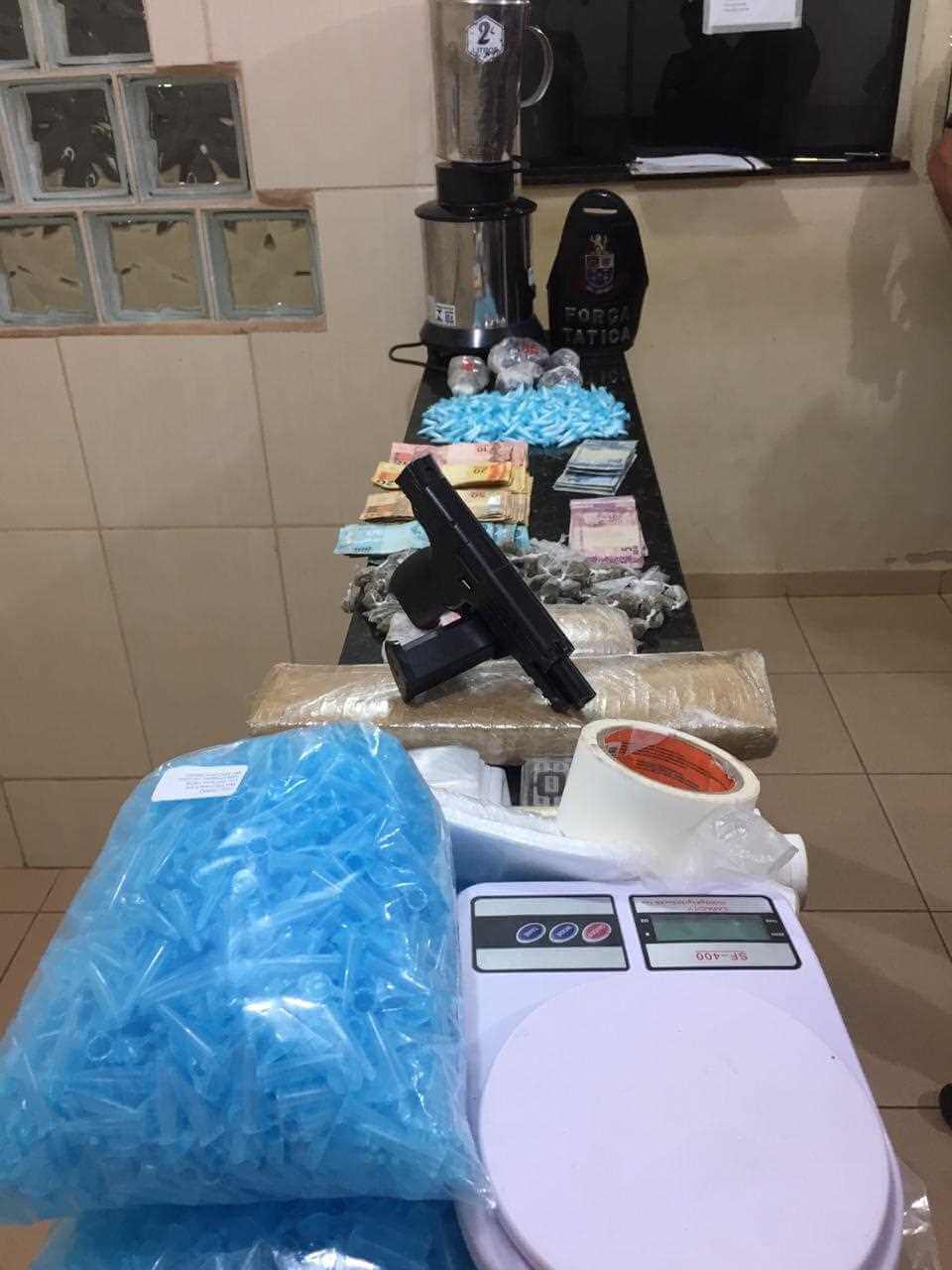 Dentro da casa foram localizados pinos cheios de cocaína, material para embalo, porções grande de cocaína e quase quatro mil reais. G. H. G, de 19 anos e A.H.M, de 22, foram encaminhados ao Plantão Policial, autuados em flagrante por tráfico de drogas e recolhidos ao Centro de Triagem.
