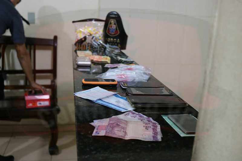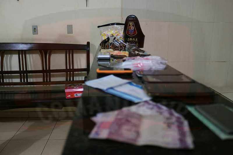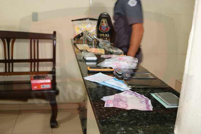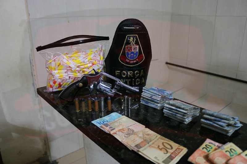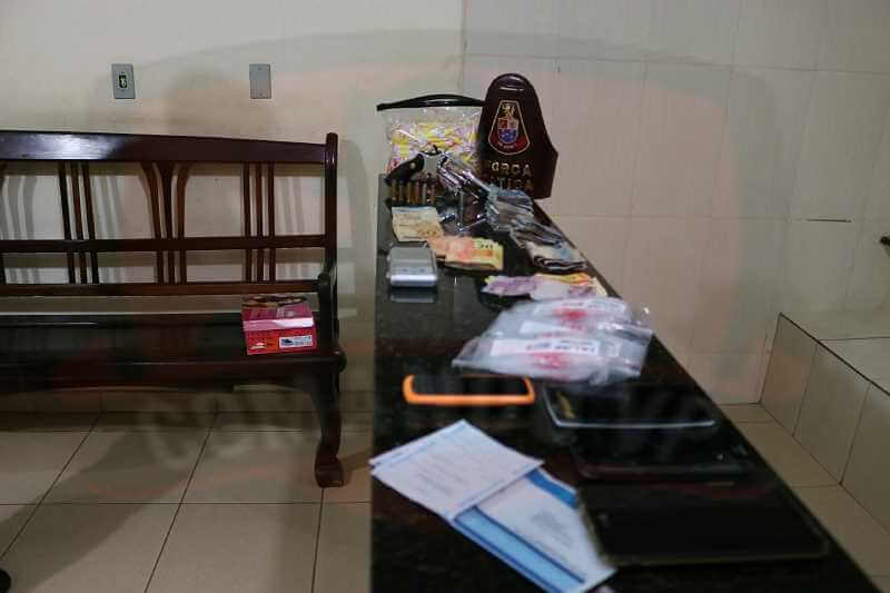 Foram localizados 717 papelotes de cocaína, R$ 1.153,00 reais, duas munições calibre 38 uma balança de precisão e petrechos para o embalo da droga.