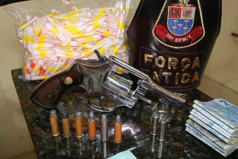 Segundo informações, uma viatura da Força Tática estava em patrulhamento preventivo quando abordou o veículo. No interior do mesmo foi localizado um revólver calibre 38 municiado. O condutor levou os policiais até seu apartamento no Paulistano onde foram localizados  drogas,  dinheiro, balança digital e objetos para embalar drogas. Jonatan da Silva Sena,  27 anos , o qual já tem passagem por tráfico , foi encaminhado ao Plantão  Policial, autuado em flagrante por tráfico de drogas e recolhido ao Centro de Triagem de São Carlos.