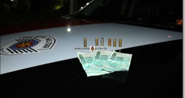 Segundo informações, policiais militares da Força Tática de Araraquara abordaram um sujeito e com o mesmo foi localizada uma arma de fogo pinada. Foi pedido apoio da Força Tática de São Carlos e a mesma foi na casa do averiguado e encontrou as notas falsas e as munições.