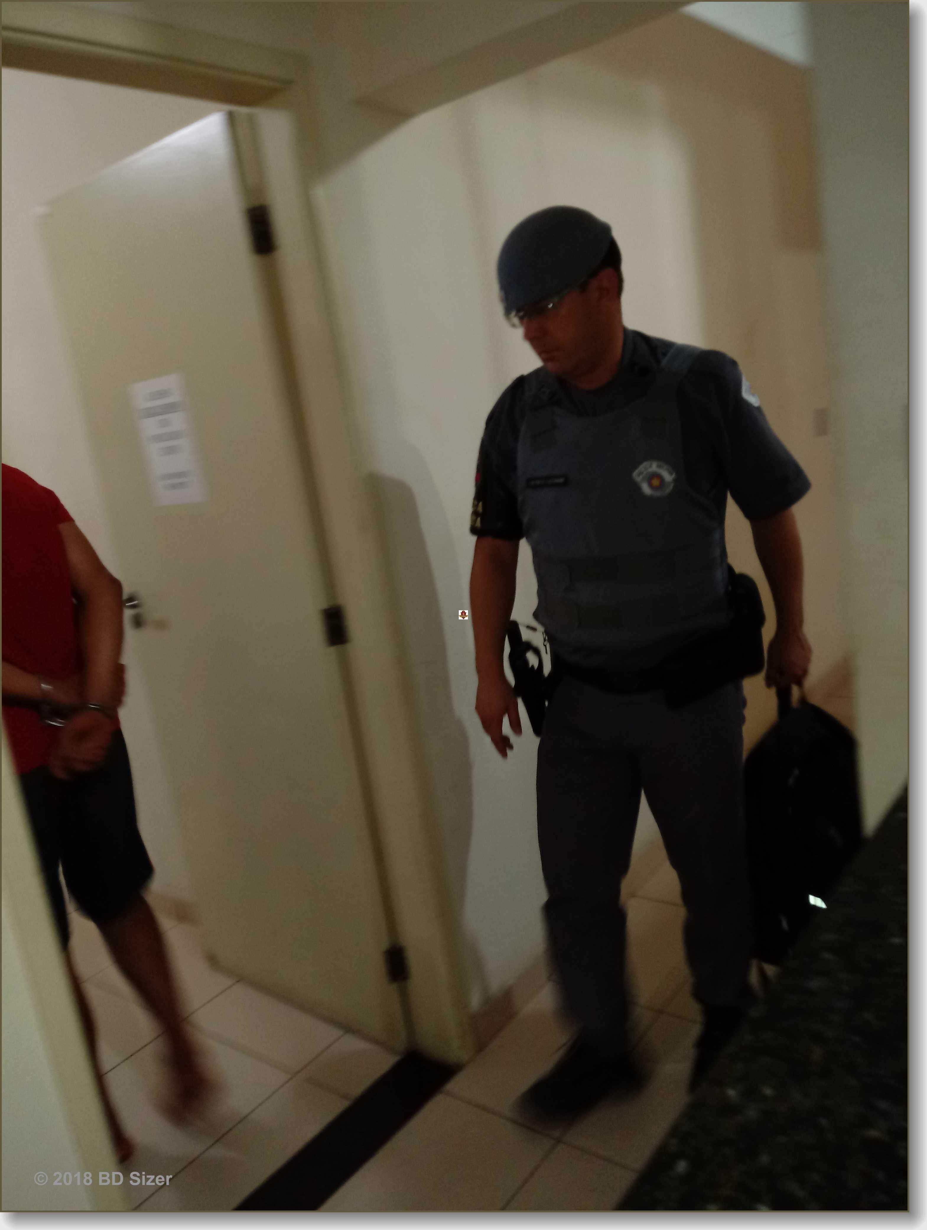 Segundo boletim de ocorrência, os policiais, cabo D-Lazarine, soldados Weliton e Pereira estavam em patrulhamento quando abordaram Cristiano Donizetti Silva Farias de Aquino, de 31 anos, morador no bairro Cidade Aracy. Com o mesmo foram localizados 8 relógios de pulso, (feminino), uma máquina digital e a quantia de R$ 373,00. Indagado sobre a procedência dos objetos Cristiano confessou que teria furtado de uma casa no bairro Cidade Jardim. Ele disse também que havia furtado um televisor e vendido por R$ 50,00 para um sujeito morador no bairro Cidade Jardim. O detido levou os policiais até a rua Bernardino Fernandes Nunes, local onde foi localizado a TV e o receptador Maicon. O receptador disse desconhecer que o objeto era produto de furto e segundo o mesmo, ele comprou, pois o ladrão disse que precisava vender a TV para comprar alimentos. O indiciado levou a PM na casa onde havia cometido o furto. Os policiais encontraram a porta arrombada e a casa toda em desalinho. Através de um vizinho conseguiram encontrar a vítima uma senhora de 84 anos que estava na casa da irmã e nem sabia que sua casa havia sido furtada. A Polícia Científica foi acionada e fez seu trabalho de praxe. O suposto ladrão e o receptador foram encaminhados ao Plantão Policial onde o delegado Dr. Adriano Callsen Alexandrino autuou Cristiano em flagrante por furto qualificado e o recolheu ao Centro de Triagem de São Carlos. O receptador foi liberado. Os produtos do furto foram entregues para a vítima.